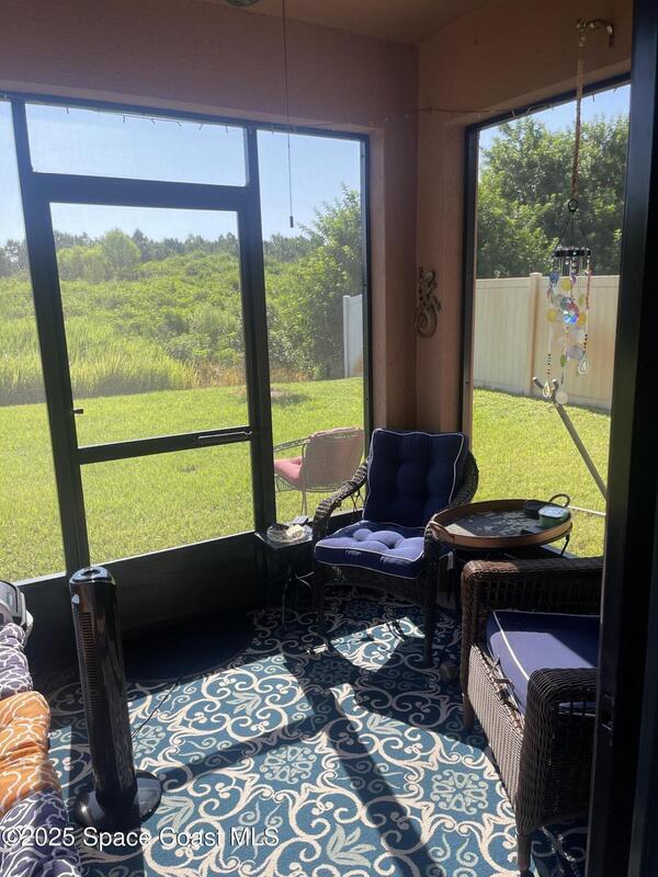 This beautifully maintained 4-bedroom, 2-bathroom home has 1,916 square feet of comfortable living space in the gated community of Bayside Lakes in Palm Bay. Designed for both functionality and style, the home features a spacious, open floor plan with an extended living area and a bright family room connected to the modern kitchen. The kitchen is equipped with upgraded stainless-steel appliances, granite countertops, and white cabinetry with crown molding. Ceramic tile flows through the main living areas, with cozy carpeted bedrooms. Step outside to a covered lanai has peaceful views of the canal and added privacy. The home includes a 2-car garage and is situated on a lot with no rear neighbors. Community amenities include a future pool, cabana, and tot lot, along with access to the Bayside Lakes clubhouse and amenities. Partially furnished and located near parks, shopping, and dining, this home combines comfort, convenience, and security in a sought-after neighborhood.