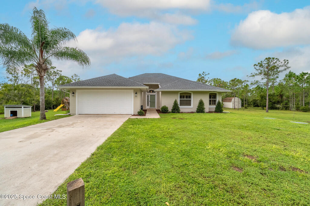 At nearly 5 acres, this well maintained piece of Florida paradise features a stocked pond with artesian well, chicken coops, and a fully fenced, one acre pasture ready for livestock/horses. Turnkey ready with a newly painted exterior and interior, new roof, and new AC, this charming home boasts plenty of light, an electric fireplace, vaulted ceilings, laminate flooring throughout, and an updated kitchen and primary bath, along with a whole house water filtration system. This beautiful home sits in the middle of the property, giving privacy on this lightly traveled road. Included is a large shed for storage and custom dog house. Don't miss this opportunity to make this your homestead or quiet oasis!
