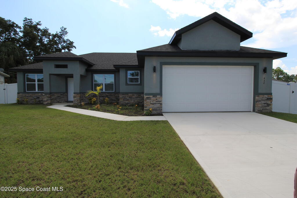 OFFERING 50% OFF FIRST MONTHS RENT! Beautiful brand new home located in South West Palm Bay close to Bayside Lakes! The features of this home include four bedrooms, three bathrooms, inside laundry room, living room and dining room. The island kitchen has quartz countertops, stainless steel appliances, white shaker cabinets, pendant lights and pantry. The owners suite includes double sinks, walk-in shower and a spacious walk-in closet. Home also includes a covered patio overlook the backyard. No Carpet! Make your appointment today!