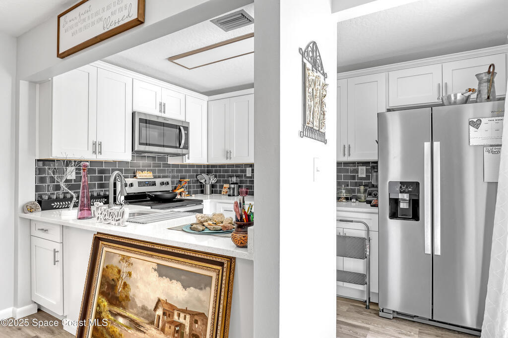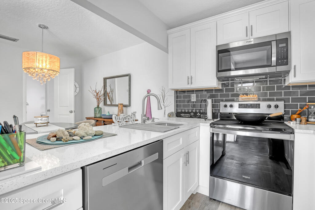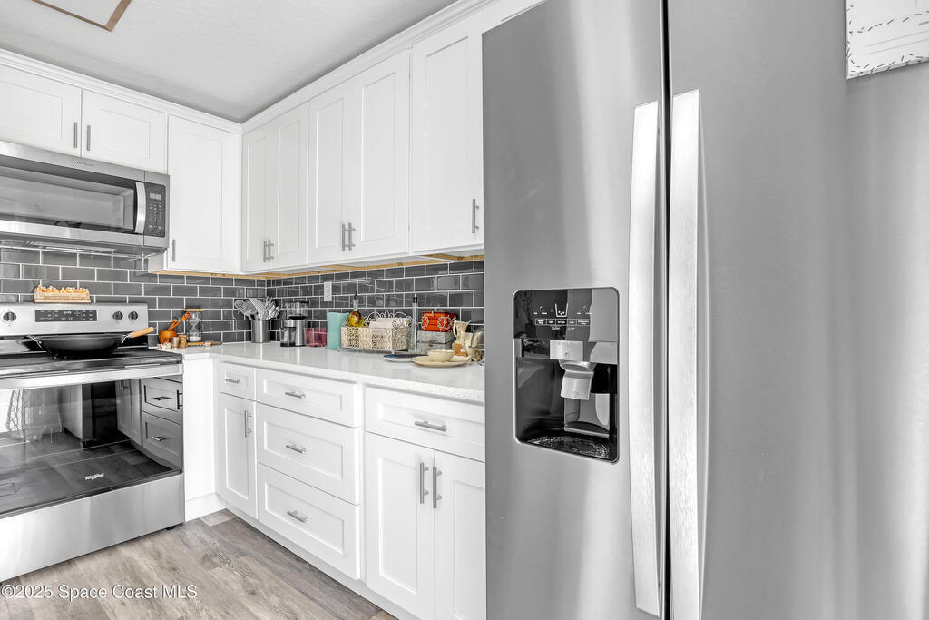 Take a look at this tastefully remodeled 2 bedroom/2bathroom townhome located in Titusville, FL! The kitchen has been updated to include quartz countertops, white shaker cabinets, and stainless appliances. Bathrooms updated as well. The home features new flooring throughout. Spacious bedrooms with plenty of closet space! Enjoy rocket launches from your balcony- just minutes from shopping, dining, entertainment, the Indian River, and US-1 for easy commute to the beaches!
