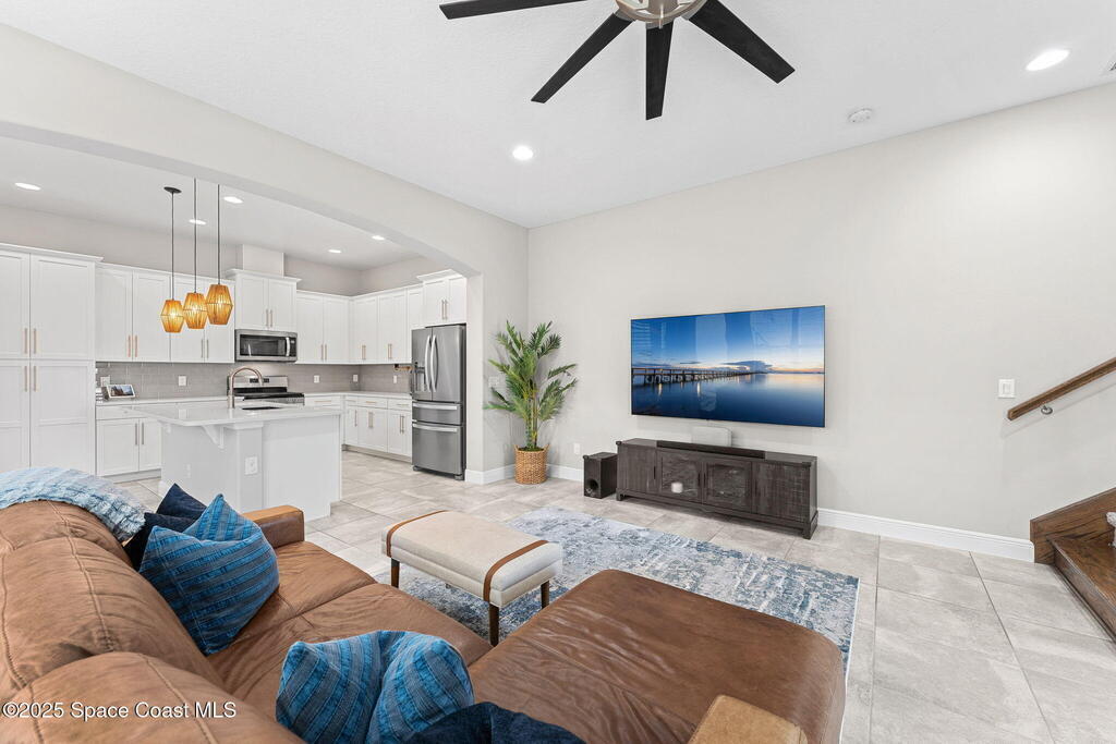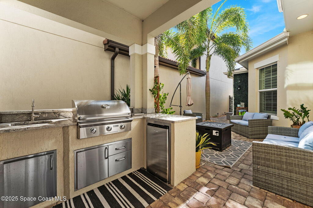 NEW REDUCED PRICE FOR FAST SALE! Golf course & lake views make the backdrop for this nearly new home, showcasing the neighborhood's best floorplan in its most coveted location. Freshly painted interiors shine with upgrades including plantation shutters, new carpet, designer lighting, and wall-to-wall tile flooring. The kitchen is a showstopper: quartz counters, glass tile backsplash, and 42'' white cabinetry, while a summer kitchen makes outdoor dining effortless. Upstairs, three bedrooms--including the expansive owner's suite--are thoughtfully placed with the laundry for convenience. Private paver patio offers peace & privacy, and 3-car garage elevates function with built-in storage, upgraded fixtures, and epoxy flooring. The community lifestyle is unmatched w/pool, playground, park area, jogging & bike trails. Stroll to shopping and dining! Water views, modern finishes, and exceptional amenities, this property blends beauty, convenience & resort-style living.