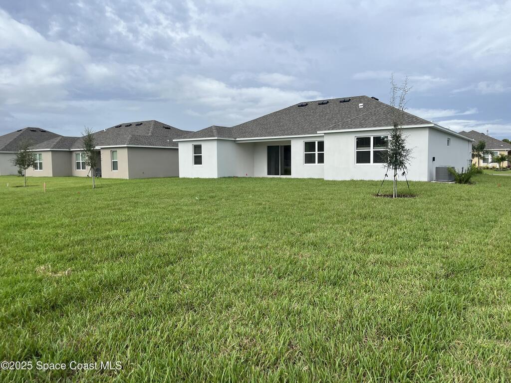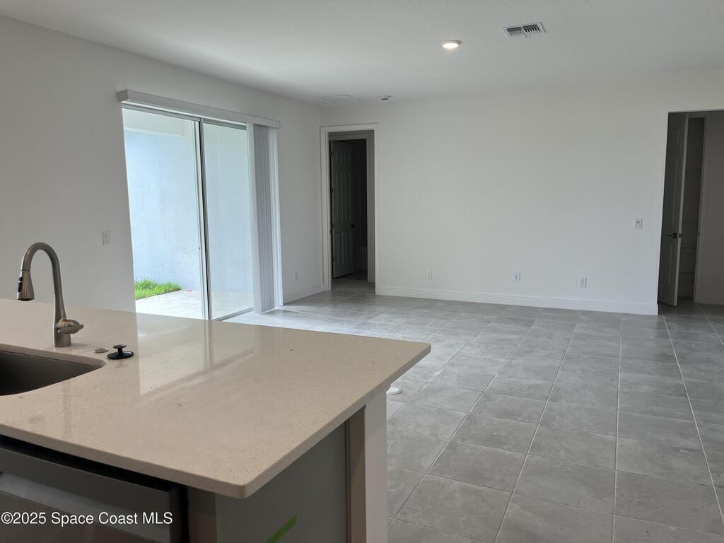 Beautiful new 1-story home featuring 4 bedrooms, 3 full baths, and a spacious 3-car garage. Open-concept design includes a bright and airy Great Room that overlooks a covered rear Lanai--perfect for outdoor living. Stylish tile flooring flows through the main living areas, with window blinds included throughout. Well-appointed kitchen features 42'' cabinets, quartz countertops, huge pantry closet, and a large center island - great for entertaining and everyday living. A versatile Flex Space near the front entry adds extra room for a home office or den. This gated community is a hidden gem in NE Palm Bay near Palm Bay Road and I-95 with quick access to Hammock Landing, major employers, schools, shopping centers, and Restaurants. The mature trees in the community provide natural beauty and shade. Community is just 20 minutes to the the beach!