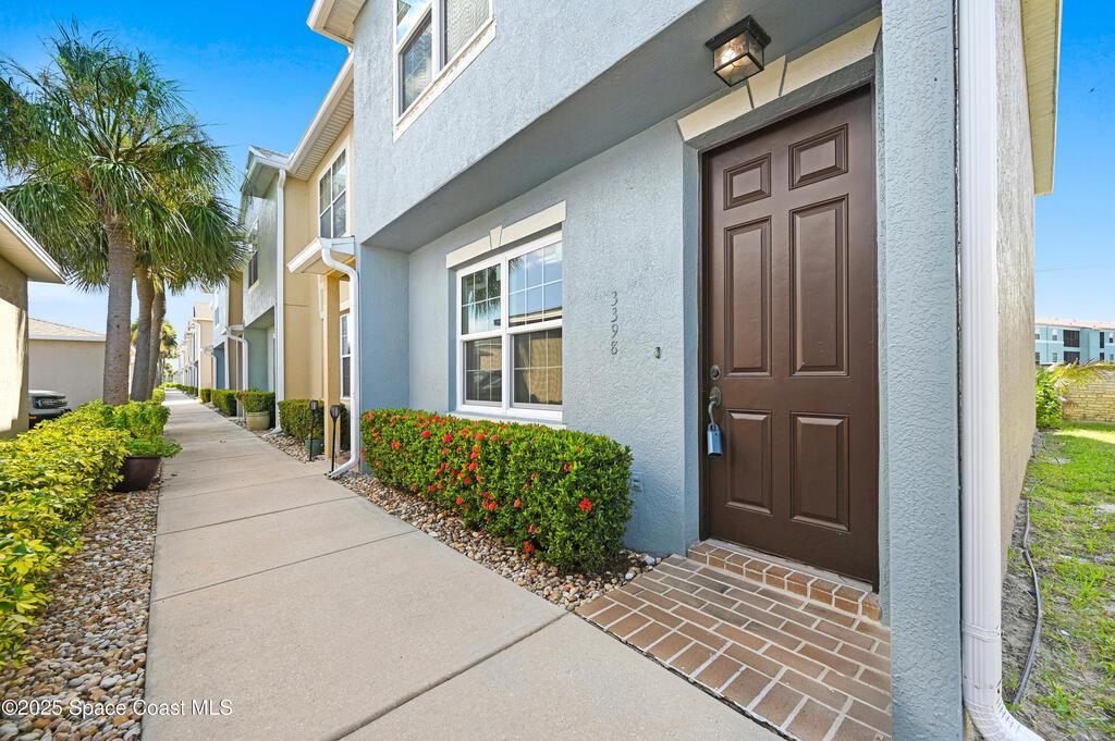 Live the ultimate MAINTENACE FREE lifestyle ''BEACHSIDE'' in this beautiful END UNIT townhome located in GATED Oceanside Village. Start your morning by walking to the ocean to collect sea shells, surf the waves or watch breathtaking rocket launches. HOA maintains entire exterior including roof, painting & lawn service so save thousands on your Insurance Policy. Sellers are offering $2,500 towards new appliances! 2 Master Suites w/private bathrooms each to include a tub & a shower! A one car detached garage is just steps away & new impact windows offer peace of mind. Practical updates include a 2023 AC condenser, a 2022 gas hot water heater & new landscaping to enjoy while sitting on your private, screened porch. Enjoy resort-style amenities just minutes away which include a sparkling swimming pool, pickleball, tennis & basketball courts, tot lot & a clubhouse with a billiard table. Makes for a great full-time residence or coastal getaway! Close to shops, restaurants & coffee bars!
