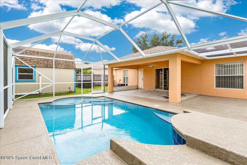 A HOME FOR THE HOLIDAYS! This One Has it All ~ 4 Bedroom Concrete Block Home on CITY WATER AND CITY SEWER. **Brand New Roof Sept. 2025** Solar Panels Are Paid in Full! Pool with Extended Screened Lani. WOW 2-Story Shed With Split AC. Fully Fenced Yard. This Home Was Built for Entertaining and Offers a Spacious, Open Floorplan. Fantastic Kitchen with Center Island Breakfast Bar. Huge, Walk-in Pantry! Split Bedroom Plan with Vaulted Ceilings and NO Carpet. Enjoy the Private Backyard (with fruit trees). Yard Backs to a Canal. Shed is Currently Used as an Office. Accepting All Financing - Make This One a Priority!