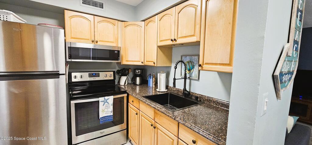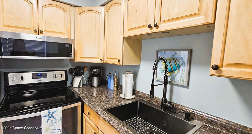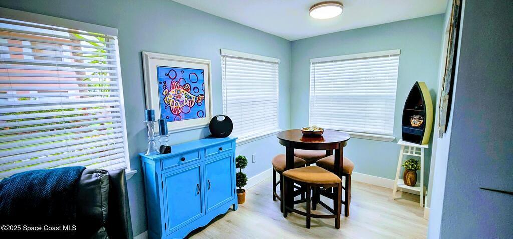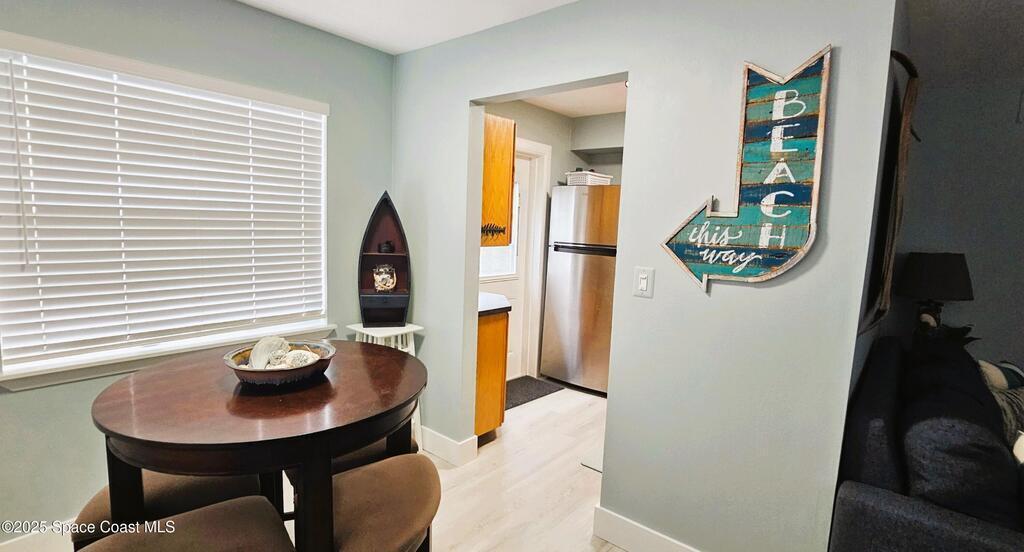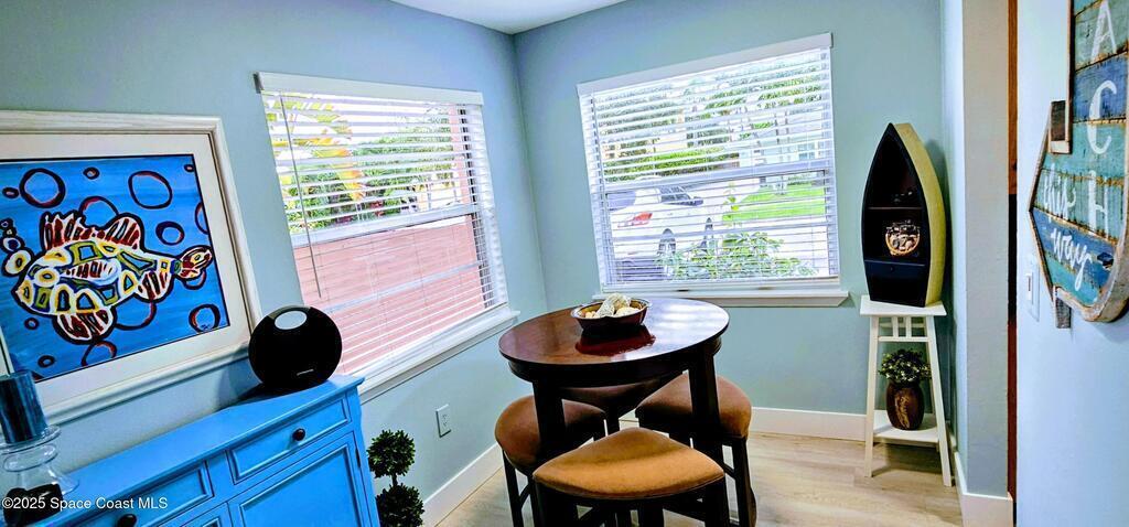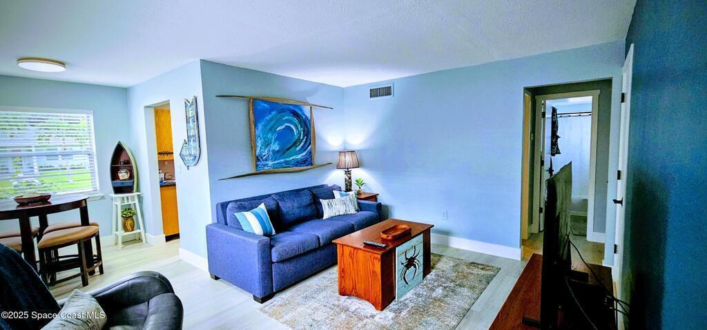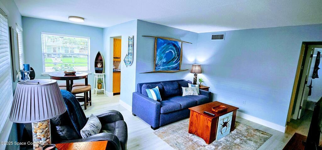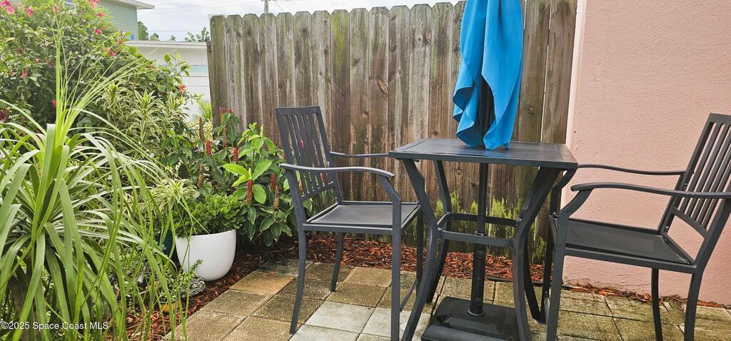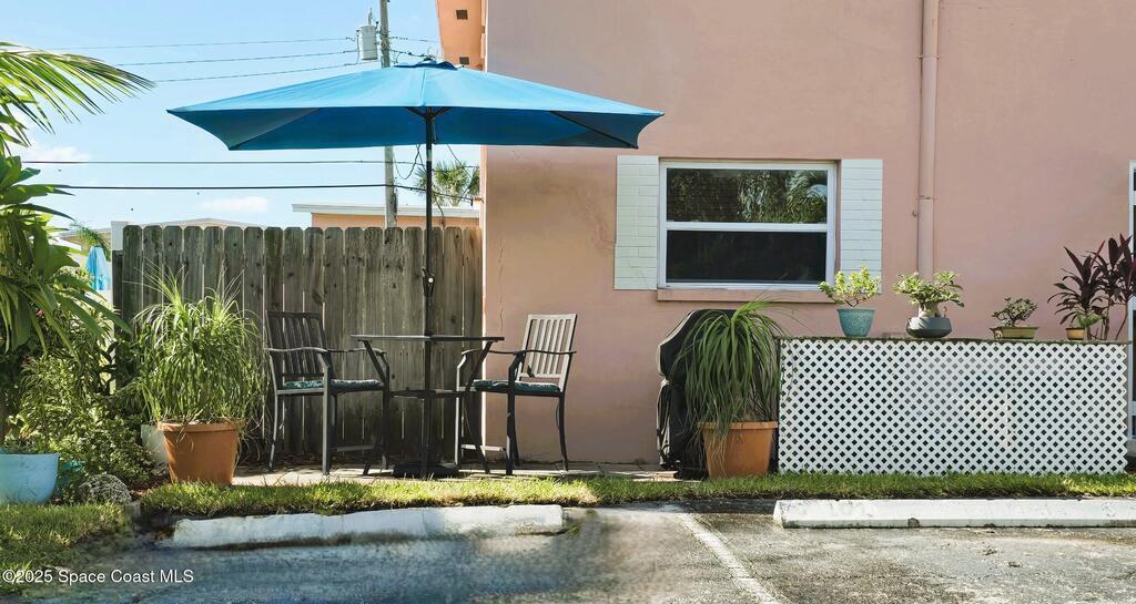 Feel the ocean breeze in this tastefully updated beachside condo, perfectly situated in a gated community just a short distance from the shore! This desirable first-floor unit radiates pride of ownership with updates throughout, including: new flooring, baseboards, paint, closet doors, and fixtures. Stylish new vanity and modern finishes. 2019 instant hot water heater and updated 100-amp electrical panel.BONUS FEATURE: guests can arrive through the landscaped gated commons area or enjoy the convenience of direct access from the assigned parking space to your private kitchen entry--complete with a charming sitting area just outside the door of this private corner unit. 2018 roof and impact windows in the bedroom and bathroom for peace of mind.Enjoy the ultimate coastal lifestyle--just a short stroll to the beach, dining, cruise ships space center, surf shops and all that this sought-after area has to offer. And within 45 minutes from two major Airports (Orlando & Melbourne).