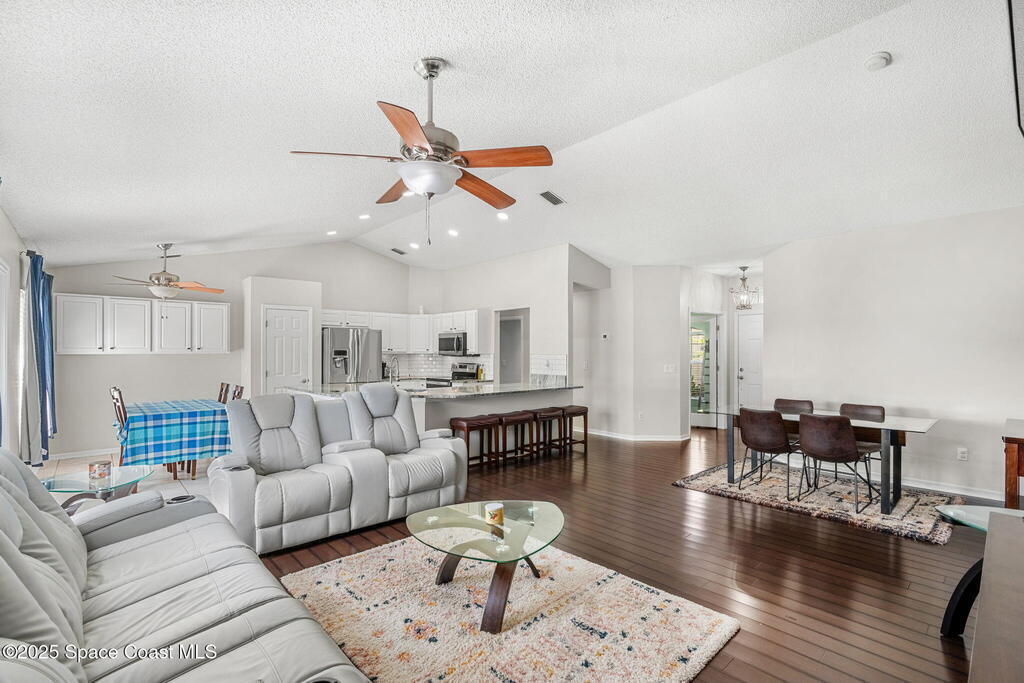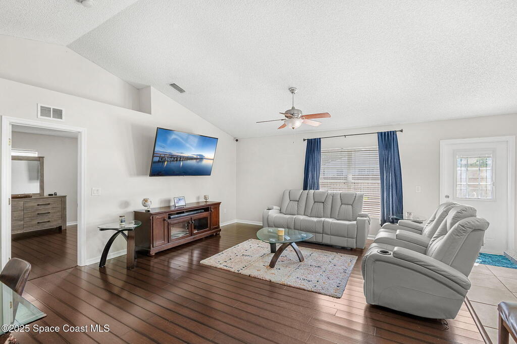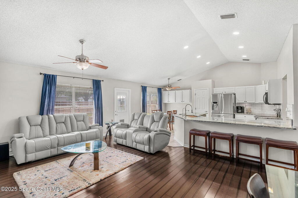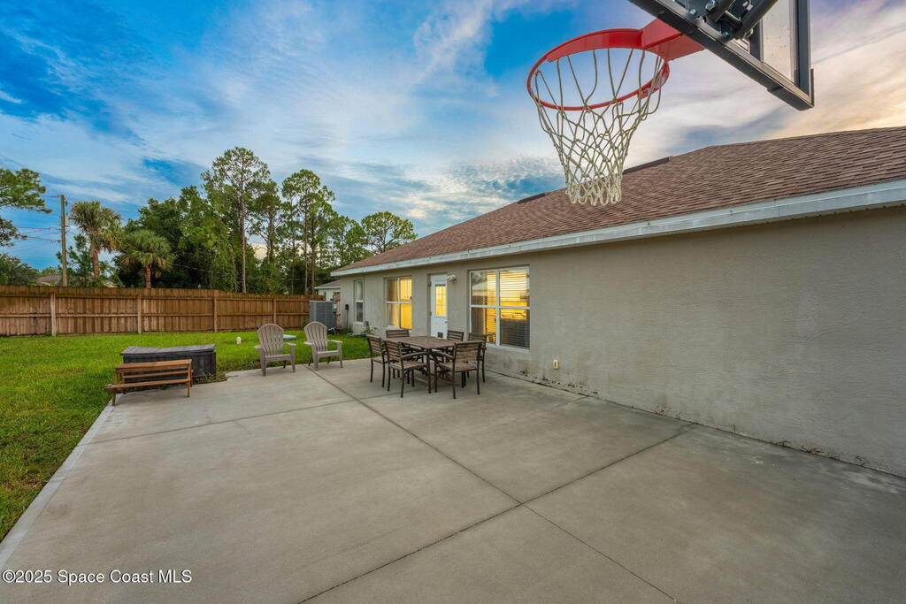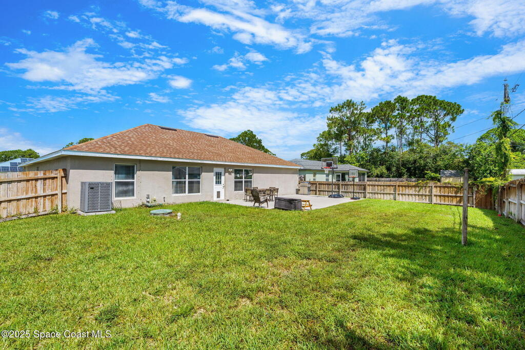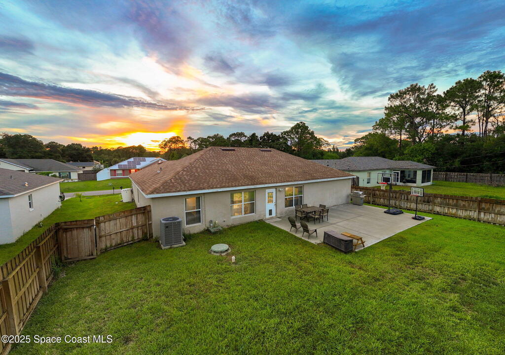 Welcome to 413 Grenadier Avenue NW, a move-in ready Palm Bay home designed with both comfort and versatility in mind. Featuring 3 bedrooms, 2 bathrooms, and 2 dedicated flex/office spaces (rare), this 1,858 sq. ft. residence offers a split floorplan and open concept living ideal for modern lifestyles. The kitchen shines with Granite countertops and stainless steel appliances, while wood and tile flooring flow throughout. Recent upgrades include a brand-new HVAC system (2024), a whole-house water osmosis system, and a shingle roof (2017). The concrete block construction, full set of storm shutters, and fenced yard provide peace of mind. A spacious backyard with poured concrete slab is perfect for a basketball court, entertaining, or future outdoor projects.