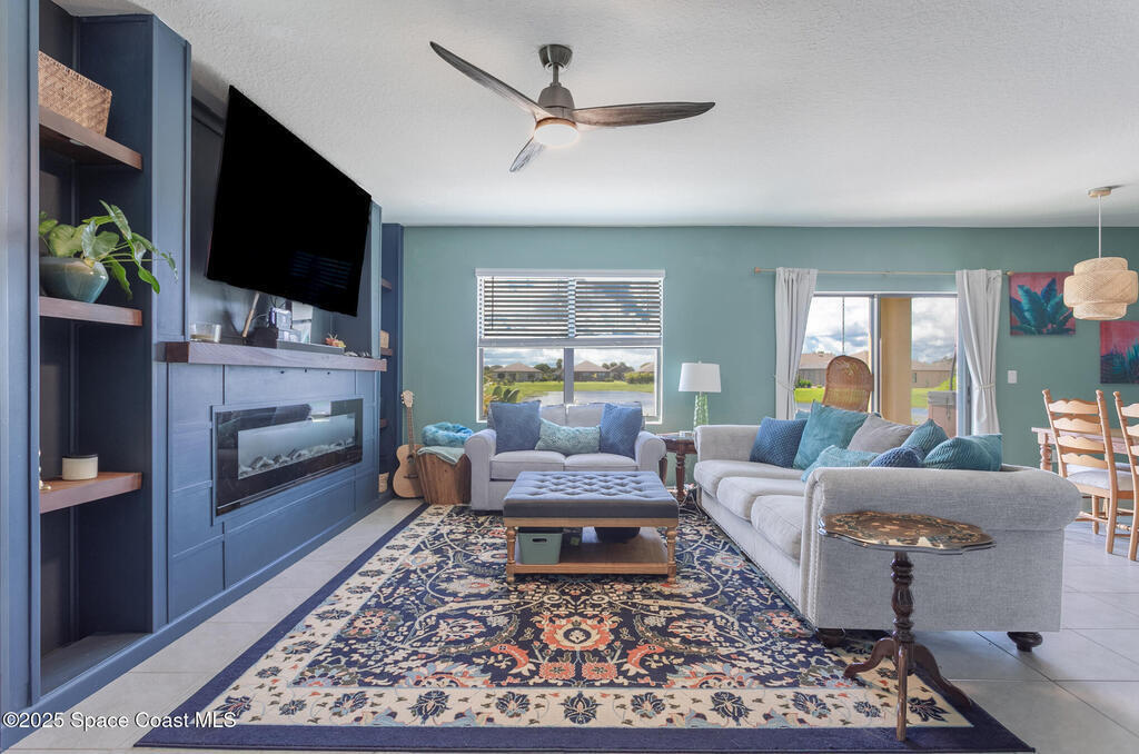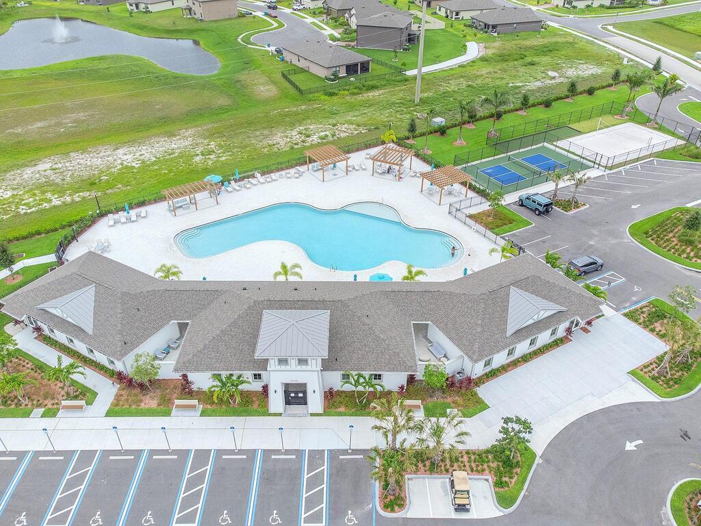 Back-up offers only at this time. Discover your lakefront retreat where luxury, relaxation, and fun come together. This beautifully maintained home sits on a pristine lot with sweeping lake views and a yard that looks straight out of a magazine. Step onto the truss-covered lanai or the 35' x 13' paver patio--perfect for coffee at sunrise, dinner under the sky, or a soothing soak in your private hot tub. Inside, custom touches shine: a built-in electric fireplace, accent walls, upgraded laundry cabinetry, and thoughtful storage throughout. The open layout, tile floors, and granite counters make the 1,900+ sq. ft. living area (2,476 total) feel even larger. Enjoy resort-style amenities--cabana-style pool, brand-new fitness center, pickleball, volleyball, bocce, and a dog park for your four-legged family. This lakefront gem--now at a new price--blends comfort, style, and community living in one irresistible package.
