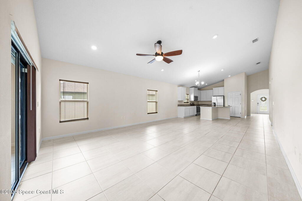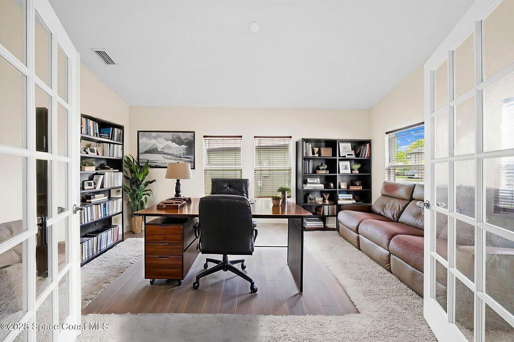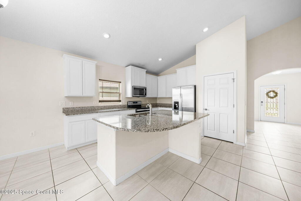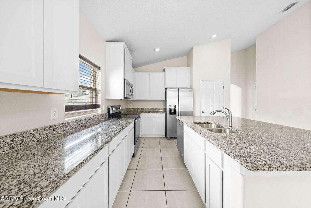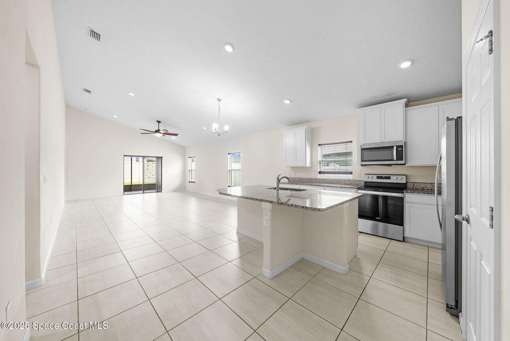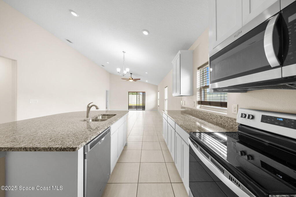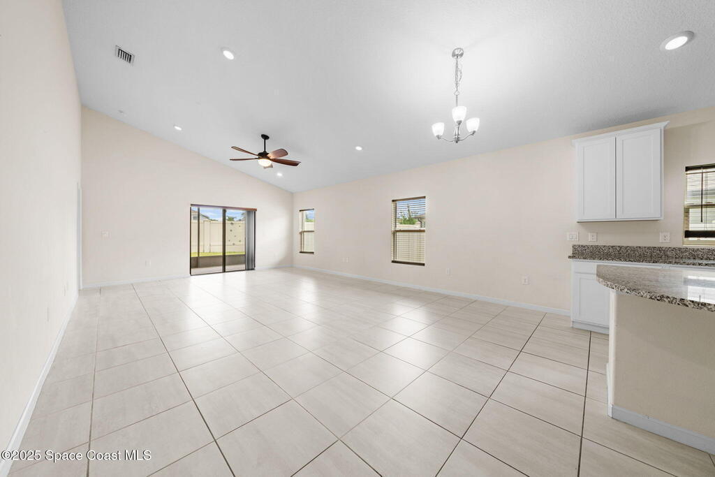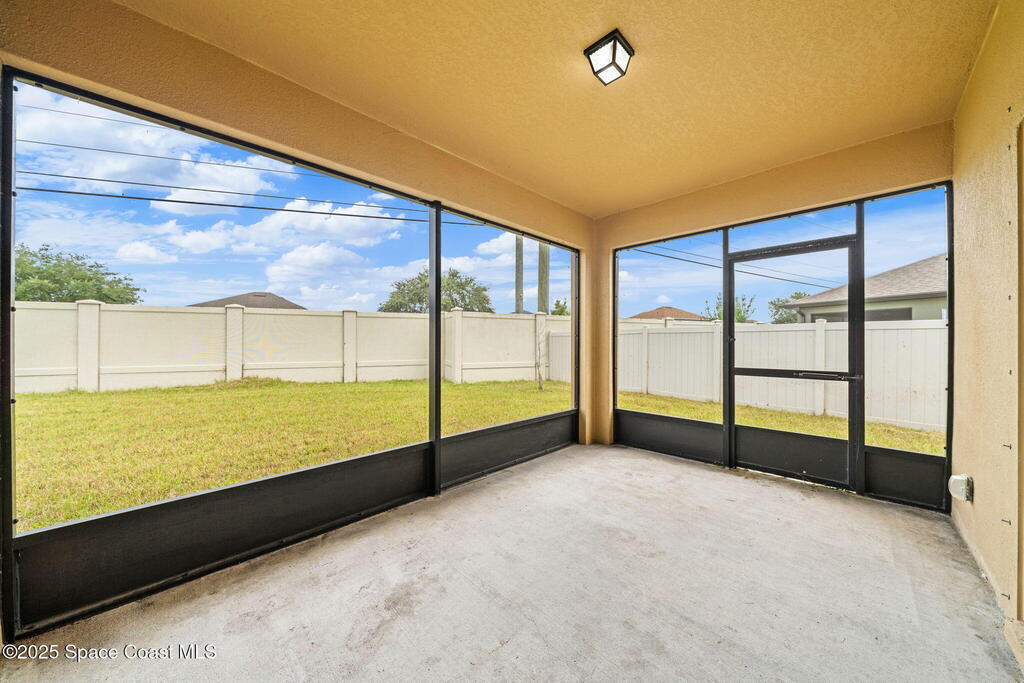 Welcome to this beautiful 2020-built Glenhurst model in the highly sought-after Palm Cove community of Rockledge! Built on one of the neighborhood's largest lots, this popular floor plan features an open layout with a bright kitchen boasting white shaker cabinets, granite countertops, and a large island that flows seamlessly into the spacious living and dining areas. The 18'x12' flex room with French doors is perfect for an office, playroom, or formal dining space. The owner's suite impresses with two walk-in closets, double vanities, a tiled shower, and a relaxing garden tub. Enjoy outdoor living on the screened patio overlooking the oversized, private fenced backyard. Additional upgrades include a new HVAC system, Low-E double-pane windows, storm shutters, and a brick-paver driveway. Centrally located minutes from The Avenues at Viera, I-95, beaches, and all the Space Coast has to offer, with a short commute to Orlando.