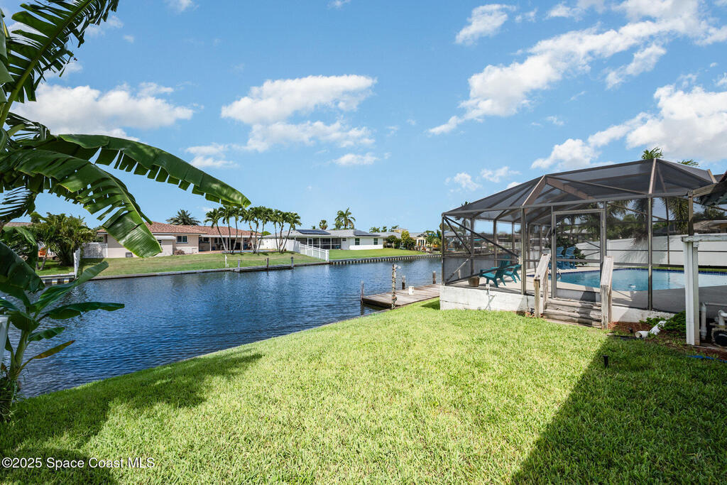 Amazing pool home on a navigable canal in The Moorings. Fully Furnished. Enjoy the pool or fish/kayak/boat from the dock. Canal goes to the Banana River. 2 living areas, separate dining area, big kitchen overlooking pool and canal. 3 large furnished bedrooms, plus an office. Great for entertaining, family or just relaxing. Minutes to the beach, dining, grocery stores and shopping. Utilites, internet, pool and lawn care included. Can be rented for 3 months or more. Short term rental rate is $4,800 per month, plus 12 sales tax paid by tenant. Long term (more than 6 months & a day) rental rate is $3950, no sales tax. There will be a cap on utilities.