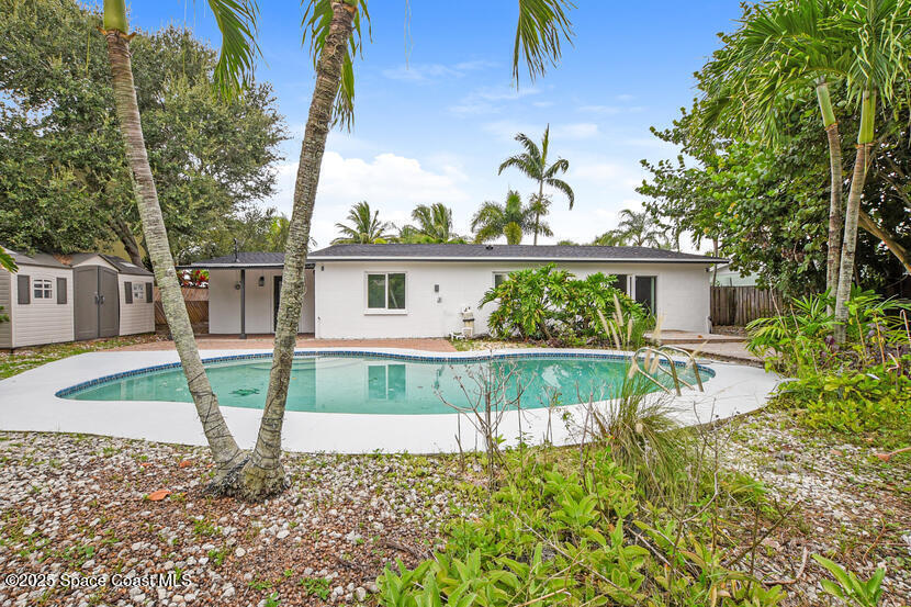 A piece of Classic Florida Beach Living in desirable Indian Harbor Beach. Centrally located and close to stores, restaurants, rivers, and blocks from the beach. This 2 bedroom, 2 bath, pool home is what you are looking for. Your own tropical backyard paradise that includes in-ground pool. Just updated with new roof, HVAC, exterior/interior paint, LVP flooring, baseboards, kitchen cabinets, quartz countertops, microwave/dishwasher/range, plus new kitchen sink and refreshed bathrooms. Also has a privacy fenced yard, large shed, and impact windows. Just right for the 1st time home buyer or empty nesters looking to downsize. Be sure to schedule your tour asap to this beautiful beach home..