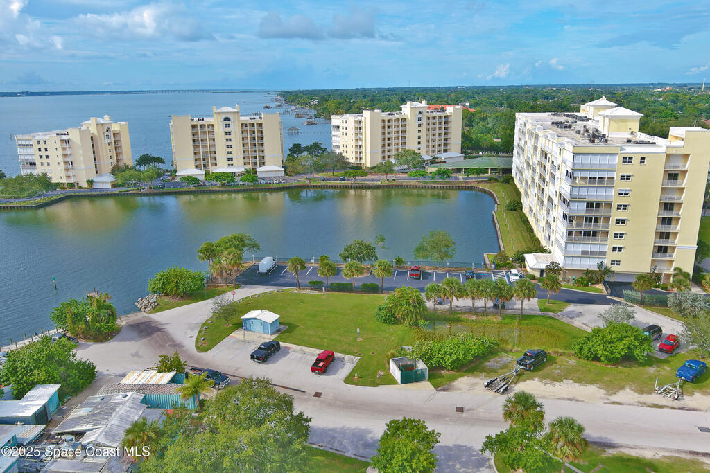 Step into this spectacular Direct Indian River view gated community condominium. 3 larger than usual bedrooms two renovated bathrooms, custom hand painted tiles, cozy family room, 4th floor gem with one car garage under building plus one assigned parking outside. Ample visitor parking. This was a former builders model unit boasting 2,323 square feet of inviting living space in the sought after Island Pointe Condominium complex. This 2006 built condo combines modern updates with timeless appeal, NEW AC 2023, ROOF IN 2024, PARKING LOT REPAVED 2024.This unit has many upgrades and added features such as the built - in cabinets to show off and display your items of interest. This modern resort has two swimming pools, two tennis courts, pickle-ball, clubhouse, with full exercise facilities. Spacious balcony with amazing views of launches and the Indian River. The wildlife such as the dolphins and manatees swim right by regularly. Perfectly finished wood and tile flooring throughout.