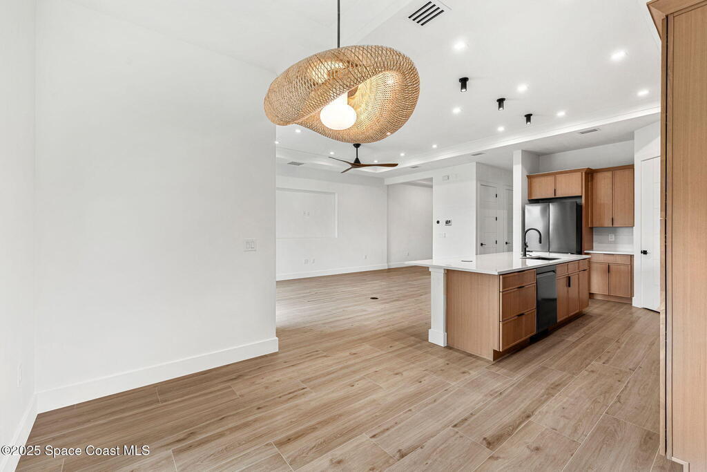 Seller offering 2/1 Rate buy down of $10,026 w/1st year interest rate of 4.25%. Step into a home that blends modern design, innovative features, and the peace of mind only new construction can provide. Built by Brevard's Builder of the Year, this award-winning residence is move-in ready. From the paver driveway and 8' impact-rated entry door to the lush landscaping, every detail sets the tone for quality and style. Inside, soaring 10' ceilings, oversized windows, and porcelain tile floors create a bright, inviting space that feels both spacious and warm. The gourmet kitchen is the heart of the home with frameless wood cabinetry, Quartz countertops, a large island, two pantries, and Samsung BeSpoke appliances designed for everyday living and entertaining alike. Smart home automation, impact-rated windows and doors, and an EV charger plug make life seamless, while added upgrades--solid wood interior doors, Kohler fixtures, blinds, and gutters--showcase thoughtful craftsmanship.