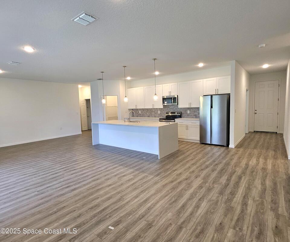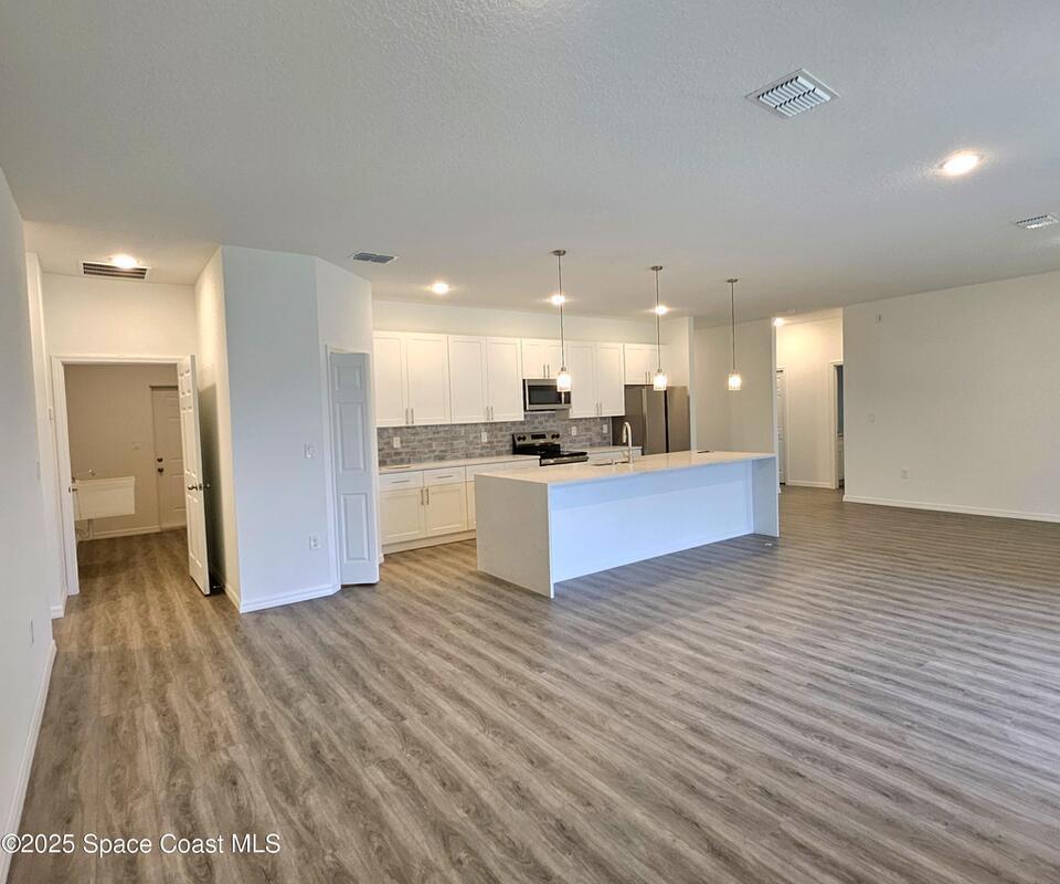 Soberb floorplan!! Features 4 bedroom/3 baths (Guest bedroom is also a suite!), two cars garage, huge backyard porch and laundry area, with plenty of natural light all over this home. Brand new water treatment system and a 6 zones irrigation system, it is more than $7,000 in equipament bonus. Get an affordable insurance with HURRICANE IMPACT windows and doors! The spacious living room, seamlessly connecting to the expansive casual dining area and a generously stainless-steel equipped kitchen with an elegant backsplash and high-quality white quartz countertops, and to complete your dreams, a large modern center island. All bathrooms are designed with white quartz countertops and a beautifull backsplash inside the shower pan. Master bedroom with a desired walk-in closet. Two baths already with glass shower door installed, that is a great bonus! Enjoy the outdoors to open-air gatherings on the spacious covered porch and chill out!