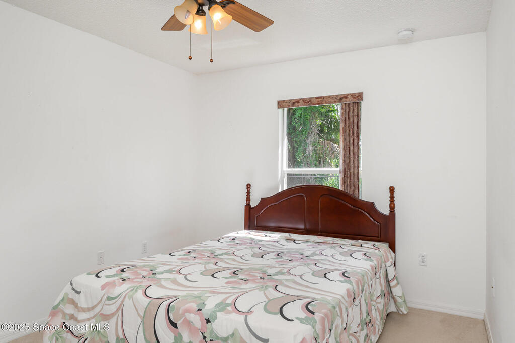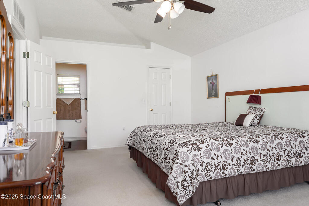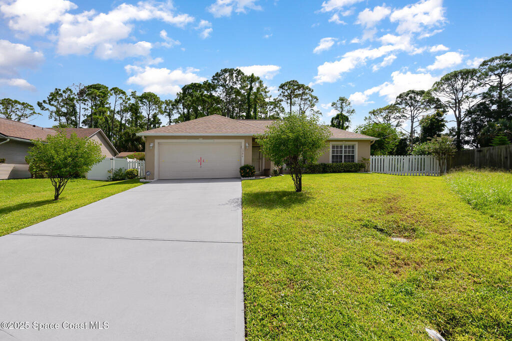 Welcome to this beautifully maintained one-owner 4 bedroom, 2 bath home offering over 1,700 sq. ft. of living space at the end of a quiet cul-de-sac in NW Palm Bay. This block-constructed home has been lovingly cared for throughout the years and is equipped with hurricane shutters for peace of mind. Inside, you'll find a spacious layout with vaulted ceilings that create an open and airy feel, making it perfect for both relaxing and entertaining. The roof was replaced in 2024, the AC is original but has been routinely serviced, the hot water tank is newer, and the septic system was pumped and maintained in July 2025. Step outside and enjoy a fully fenced backyard with fruit trees and a gorgeous landscaped setting, along with an expansive back lanai ideal for gatherings or quiet evenings at home. Nestled in a peaceful neighborhood, this home offers the perfect blend of comfort, care, and convenience.