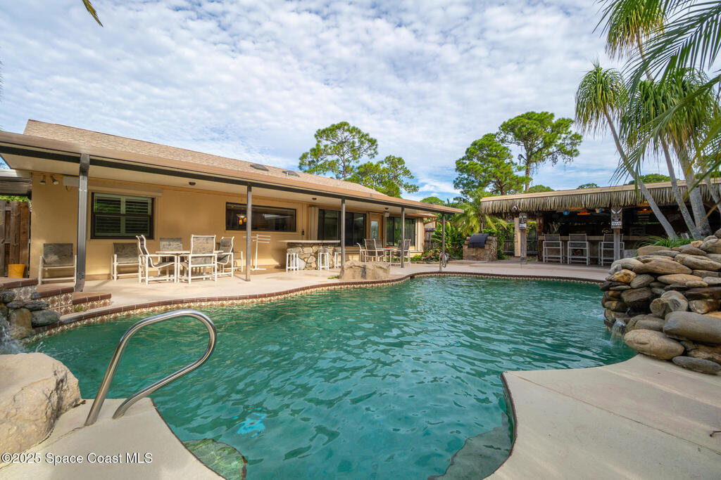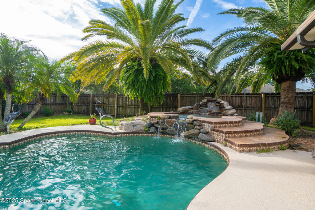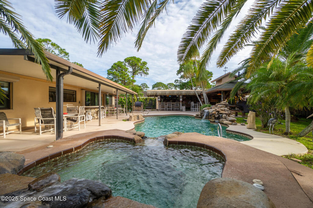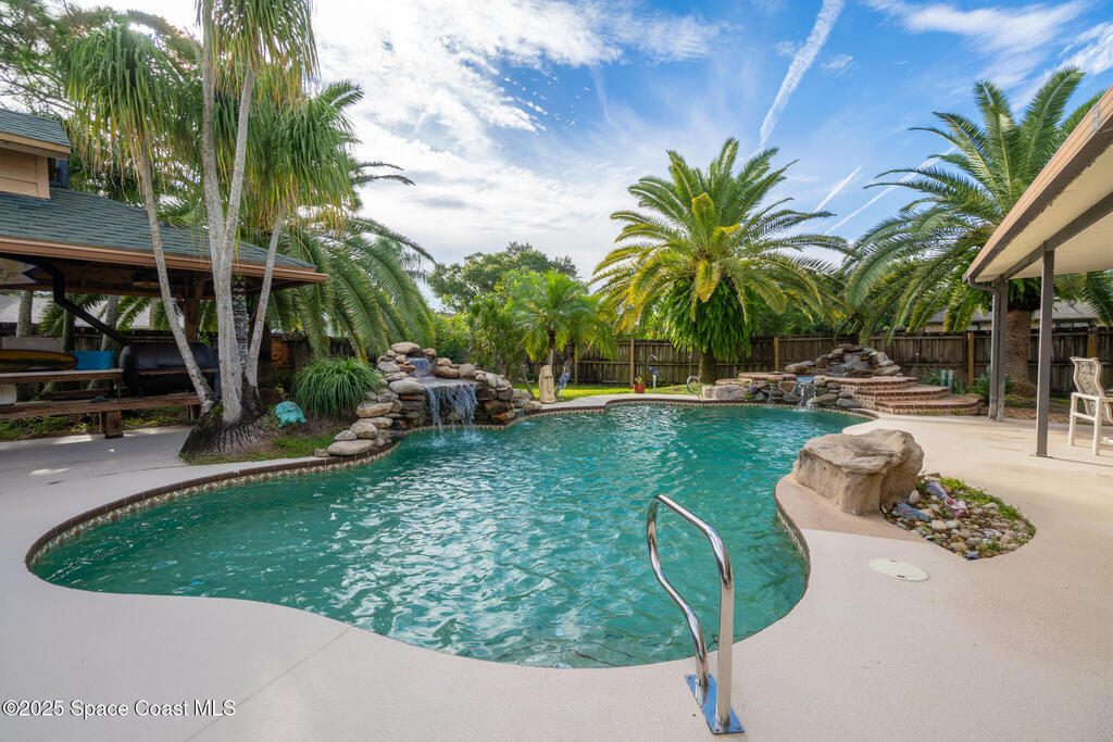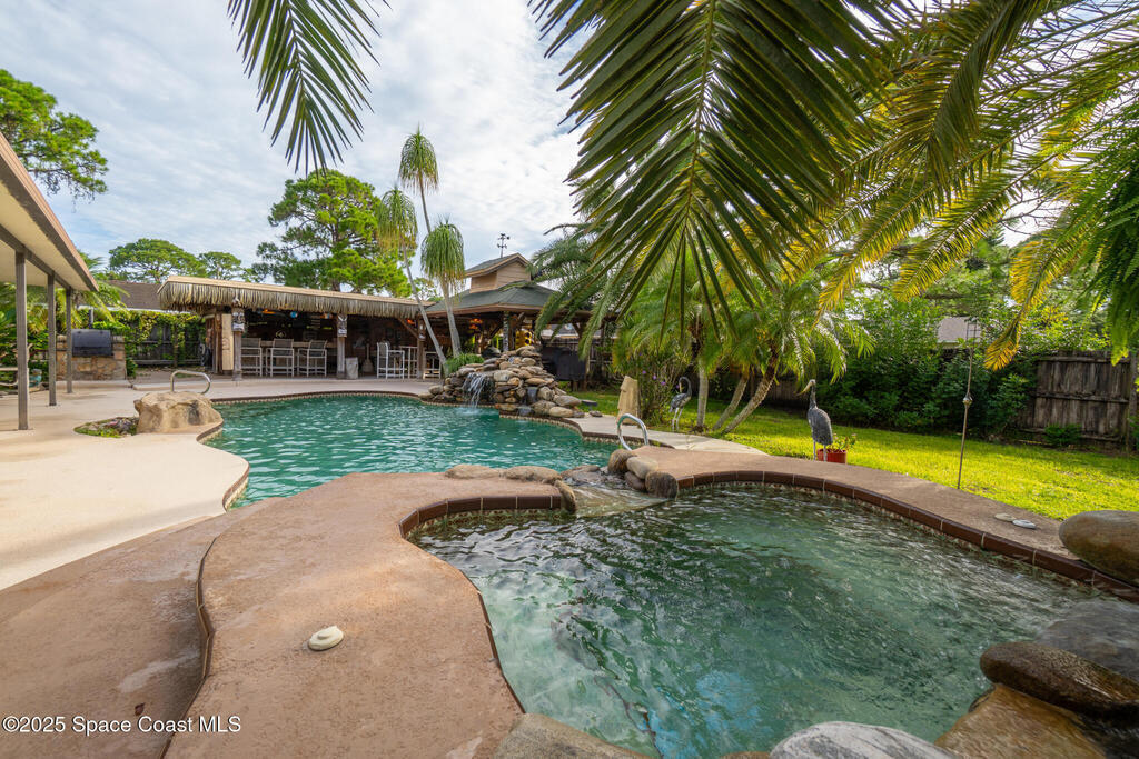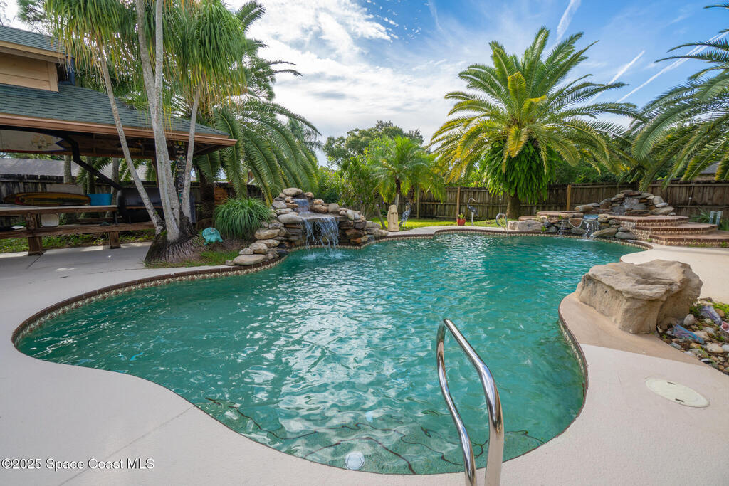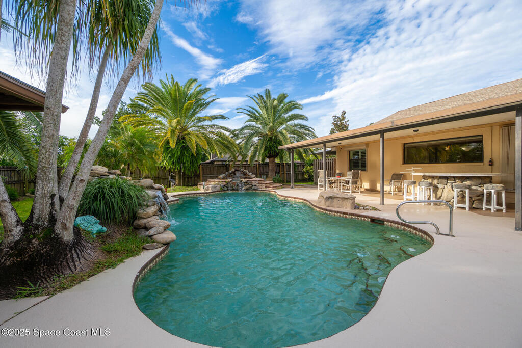 Looking for a pool home the heart of Port St John? Look no further! This one of a kind pool home is full of custom features inside and out. The inside features 3 bedrooms, 2 bathrooms, office space or 4th bedroom, air-conditioned laundry room, electric fireplace, and a custom kitchen. The kitchen was recently remodeled and features granite countertops, newer appliances, and a large bar top with room for bar stools. The backyard is your new oasis that features a large swimming pool with 2 waterfalls & a jacuzzi, a koi pond, tiki bar, tropical landscaping with multiple pineapple palms, built in speaker system, multiple cooking areas, and still has plenty of room for your pets. You can choose to cook on the big green egg, smoker, or custom-built grill. Imagine spending your weekend in your new backyard BBQing, swimming, playing pool, and having a margarita. There is plenty of parking with the extended driveway that provides space to park your boat, RV, or cars with no HOA restrictions.