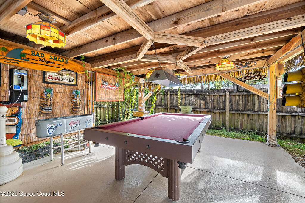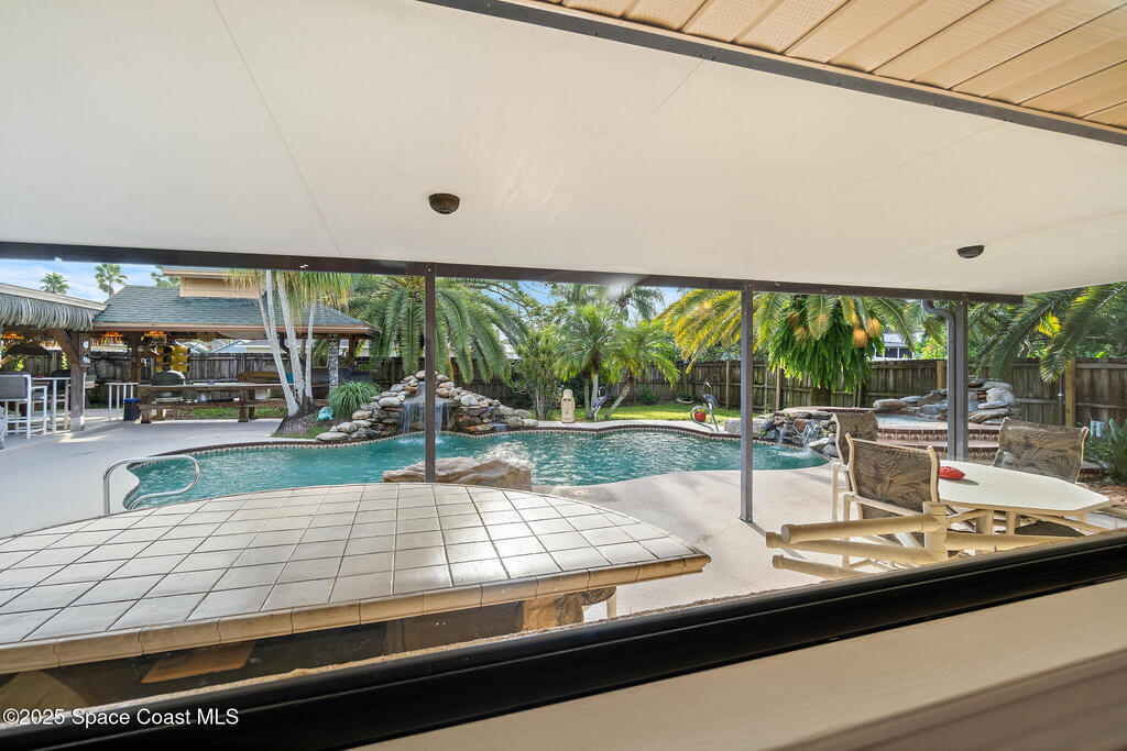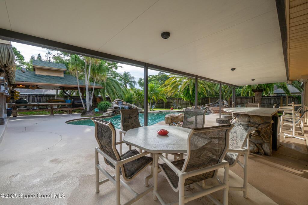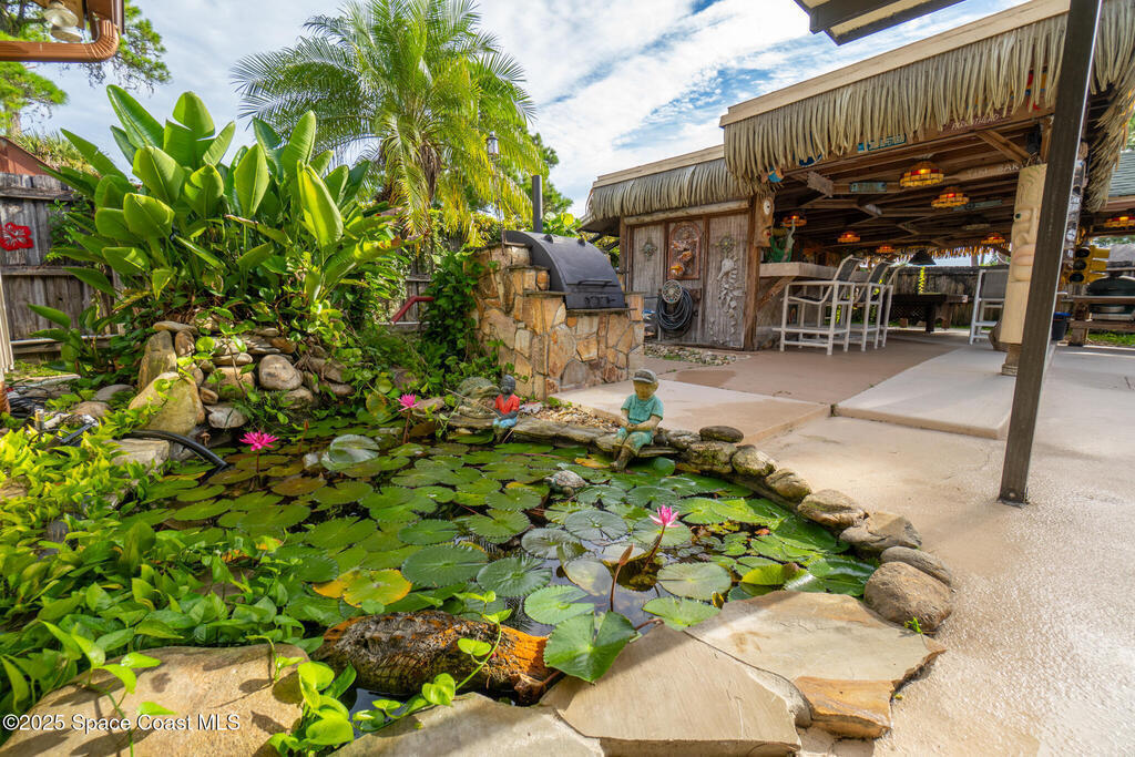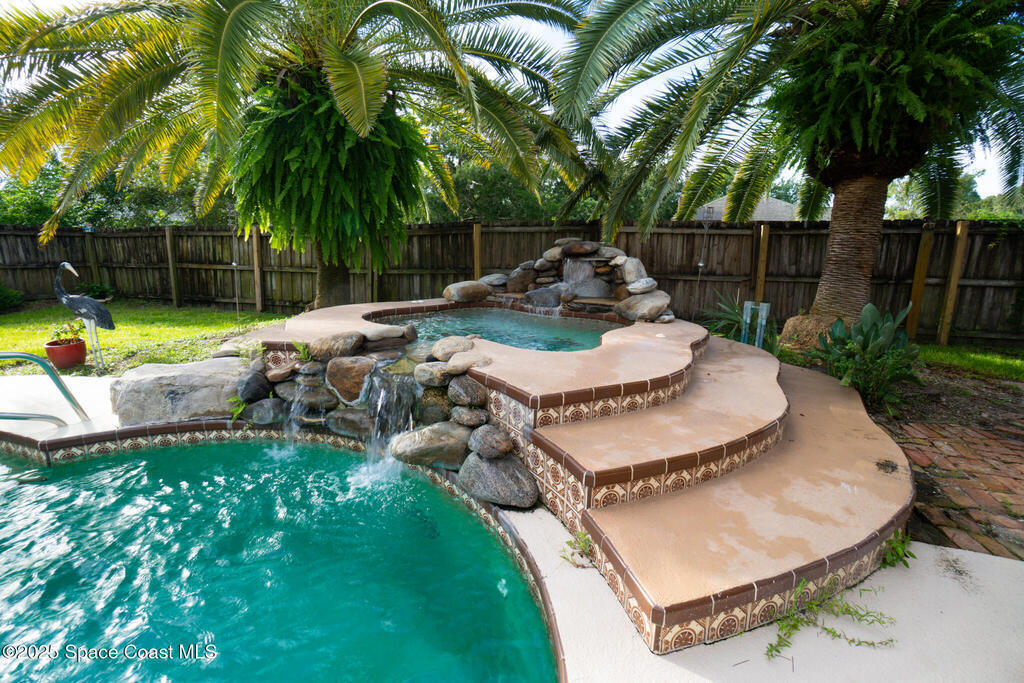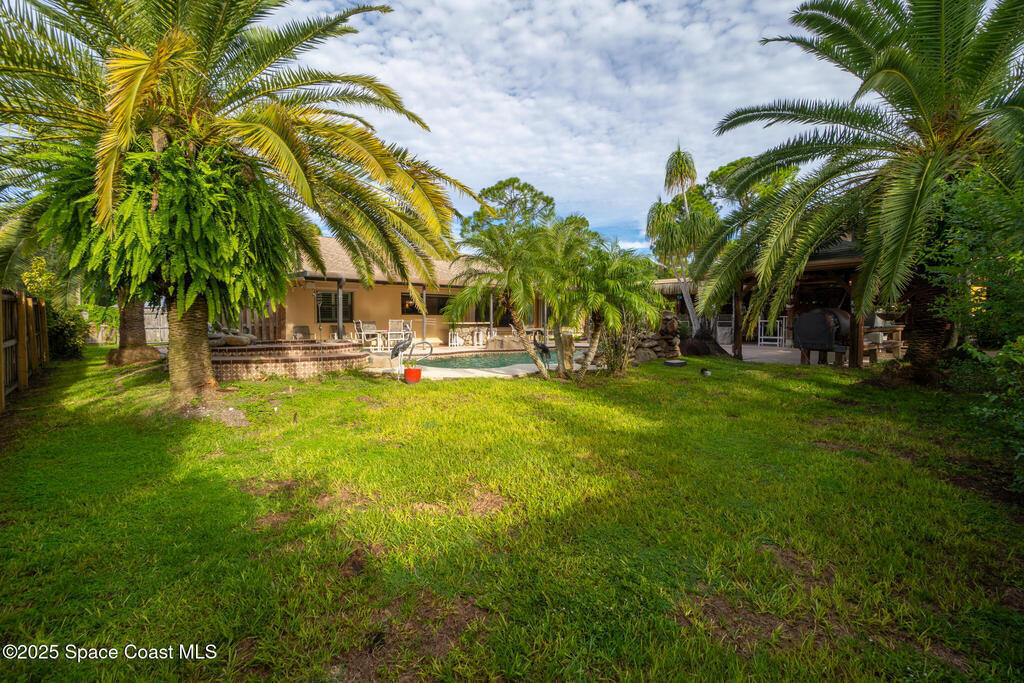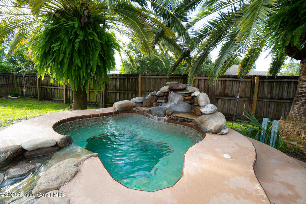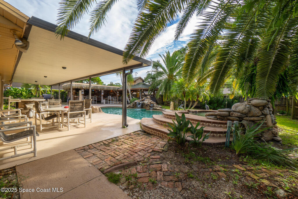 Looking for a pool home the heart of Port St John? Look no further! This one of a kind pool home is full of custom features inside and out. The inside features 3 bedrooms, 2 bathrooms, office space or 4th bedroom, air-conditioned laundry room, electric fireplace, and a custom kitchen. The kitchen was recently remodeled and features granite countertops, newer appliances, and a large bar top with room for bar stools. The backyard is your new oasis that features a large swimming pool with 2 waterfalls & a jacuzzi, a koi pond, tiki bar, tropical landscaping with multiple pineapple palms, built in speaker system, multiple cooking areas, and still has plenty of room for your pets. You can choose to cook on the big green egg, smoker, or custom-built grill. Imagine spending your weekend in your new backyard BBQing, swimming, playing pool, and having a margarita. There is plenty of parking with the extended driveway that provides space to park your boat, RV, or cars with no HOA restrictions.
