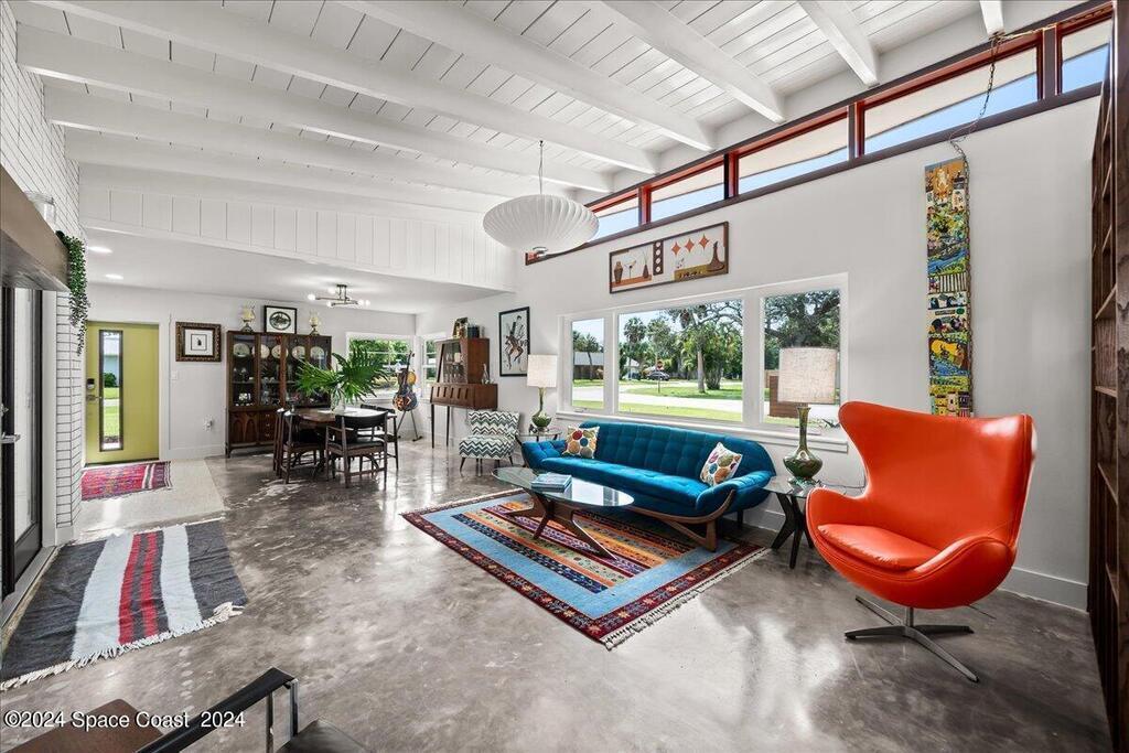 PRIICED BELOW APPRAISAL- ive the ultimate Space Coast lifestyle in this beautifully renovated mid-century modern home just steps from Indialantic's beaches, shops, and restaurants. Every detail has been thoughtfully upgraded over $300K in improvements while preserving the timeless character of terrazzo floors, vaulted ceilings, and a cozy fireplace. The chef's kitchen shines with quartz countertops, custom cabinetry, and a striking wine wall that doubles as art. Outdoors, unwind by the koi pond, take a dip in the resurfaced pool, or enjoy the spa-like outdoor shower after a beach day. The vibrant bonus room, affectionately that opens up to the pool is perfect for entertaining or family movie nights. With impact windows and doors, a newer roof, new plumbing and new electrical, this home offers peace of mind and versatility. Whether you're relocating, seeking a stylish retirement retreat, or craving a unique second home by the sea, you'll love the blend of modern comfort and
