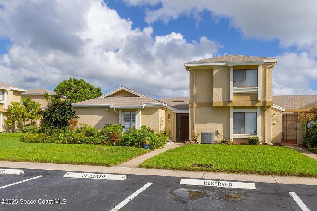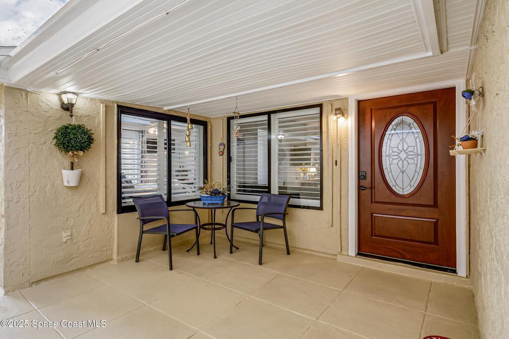 Welcome to this beautiful and unique Corner end, One story 2BD/2BA Townhome in Oakwood Villas! The front entrance provides a private screened Courtyard patio that's a perfect spot for morning coffee and outdoor relaxation. The beautiful glass entry door leads you to an open-concept design that enhances the living space, seamlessly connecting the living room, dining area, and kitchen. This lovely home features new non-slippery Porcelain tile floors throughout the unit, white kitchen cabinetry, S/S Appliances, Stackable full size Washer/Dryer, modern Light fixtures and ceiling fans. new Tankless Hot W/H and newer roof. This Unit has a second enclosed porch with entrance that provides additional living space, good for a workout room or an office. The HOA covers exterior maintenance, including Roof. Amenities include clubhouse, pool, tennis courts, playground. No Rental or Pet Restrictions. Close to shopping Malls, dinning, Melbourne Int'l Airport and is within 10 miles to the Ocean.