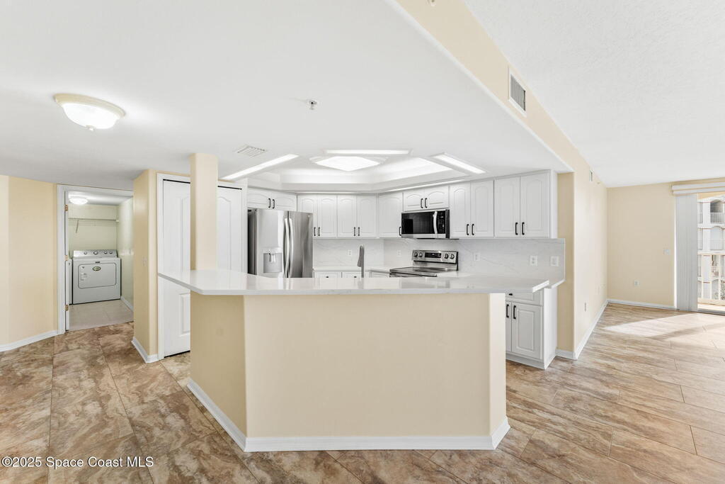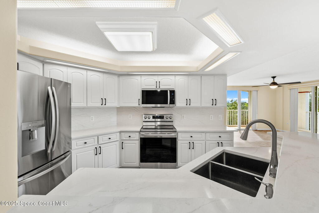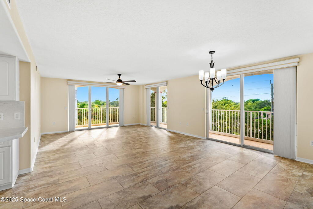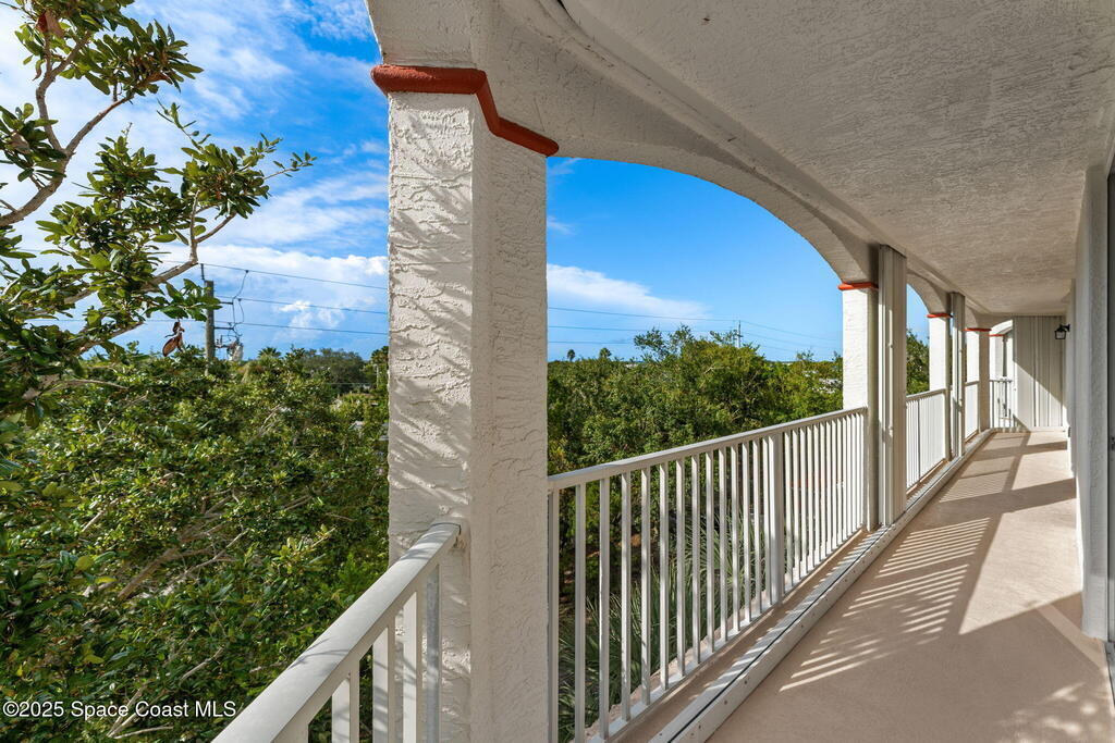 NEW PRICE!!! Welcome to the Harbor Del Rio Community, ideally situated in Central Merritt Island. Featuring three bedrooms, each with private access to the expansive wrap-around balcony (with hurricane shutters for storm protection). The large open-concept design boasts laminate flooring throughout, updated kitchen with new appliances. Primary bedroom offers dual closets, and an en suite with double vanities, a spacious walk-in shower, and a separate garden tub. The kitchen and bathrooms are finished with solid surface countertops, complemented by window treatments throughout and a generous laundry room. The community provides amenities such as a Pool/Spa, Gym, and Clubhouse. It's conveniently located by the NEW hospital being built and minutes away from shopping, dining, and the world-renowned Cocoa Beach.