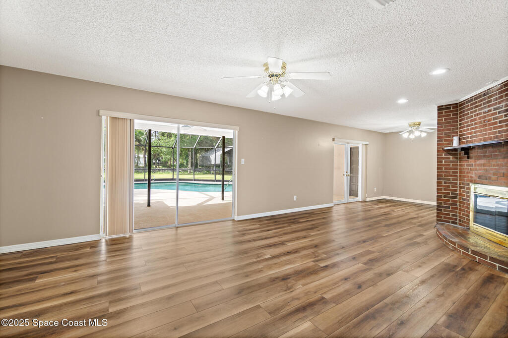 Discover rural Florida charm in this 3-bed 2-bath pool home on over half an acre of land in desirable neighborhood of The Ranches! The large backyard features covered storage for your RV, boat, and gear--perfect for outdoor enthusiasts! The great room features a brick fireplace and sliders to the screened pool and covered patio, a perfect spot to enjoy the outdoors or host gatherings. The primary includes an en-suite bath and plenty of closet space. The kitchen offers a breakfast bar and stainless appliances. The spacious 2-car garage has built-in shelving for additional storage. Recent updates include 2019 wood laminate flooring, 2020 roof, 2021 pool pump, and 2022 pool heater. 2025 upgrades are a new water heater, water supply re-pipe, newly painted pool deck, and septic service with pump-out. With quick access to I-95, Hwy 520, and Hwy 524, you're close to beaches, fishing, and hunting. The Space Center, Port Canaveral, and Orlando are minutes away. Schedule a private showing today!
