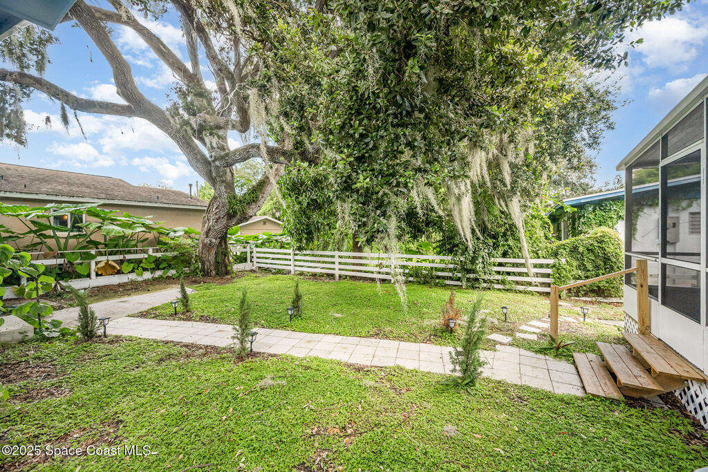 Celebrate Old Florida charm coupled w/delightful updates in this vintage cottage-style home. Distinct living & dining flow together for easy entertaining. Hardwood floors span throughout as 2 versatile flex rms present endless possibilities. One is a spacious step-down area off the kitchen, w/access to the screened porch. It's an ideal spot for a family or game rm. The other is a large step-down space w/entry to the garage & one of the 3 bdrms. This expanse could be an in-home office, a hobby hub, or gym. The kitchen fashions throwback character while offering white stone counters, a subway tile backsplash, white cabinetry, a SS refrigerator & dishwasher. The tub/shower bath is nicely updated w/a mid-century modern touch. Enjoy breezy evenings on the screened lanai overlooking a lush backyard. Washer & Dryer included. Reclaimed irrigation water saves you money! The Indian River is a block away & the shops & restaurants of Cocoa Village are an 8- minute bike ride!