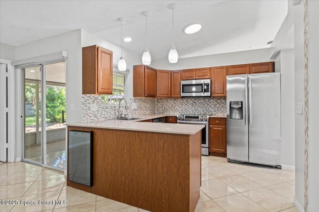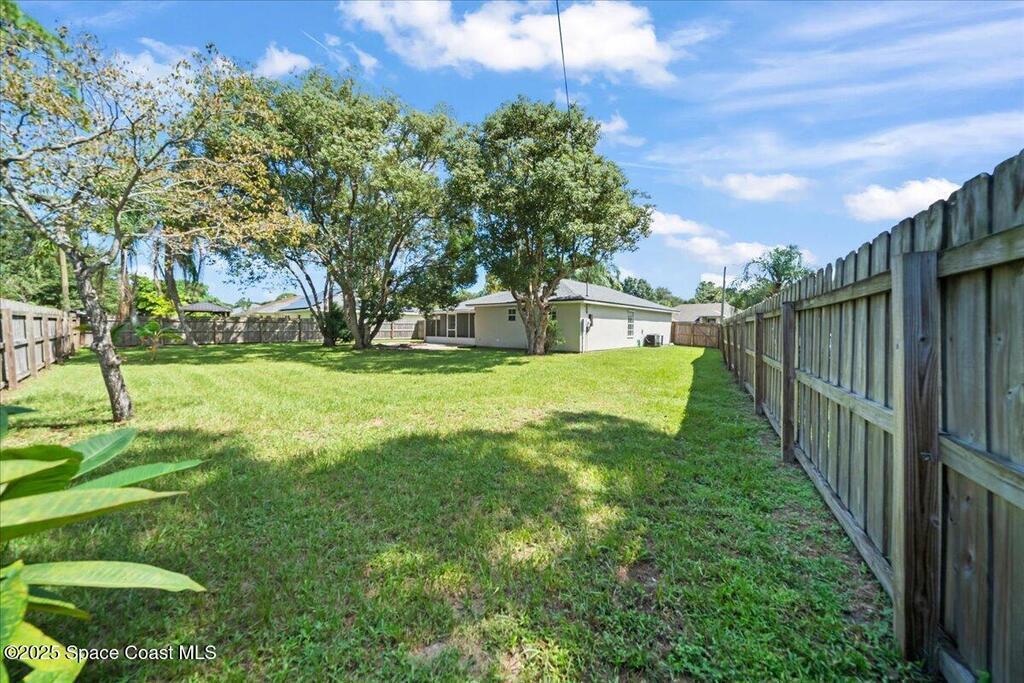 This 3 bed, 2 bath, 2 car garage home is perfect for first-time buyers or investors and move-in ready! As you enter the home you are greeted with vaulted ceilings and plenty of natural light. The home has tile throughout as well as new window treatments on all windows. The kitchen features granite counters and a wine cooler in the peninsula. Outside you will find a large screened porch, fully-fenced back yard with a large oak tree for shade, and a fire pit for the cooler nights. The roof and hot water heater were replaced in 2022 as well as fresh interior and exterior paint. The laundry room is inside the home, and washer and dryer convey. The home is centrally located with easy access to Malabar Road and I-95.