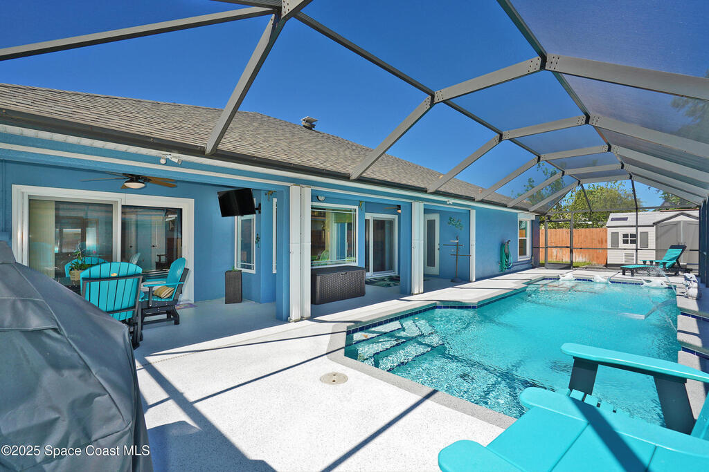 Beautifully updated 5/3/3 POOL home with over 2300 sq. ft. of living space located in the hot community of Chelsea Park! This one has EVERYTHING you're looking for in a home. Freshly painted, impeccable landscape with low-voltage lighting, NEW ROOF & GUTTERS 2023, NEW hot water heater, insulated garage & door with split AC, NEW electric panel, 50A generator hook-up, NEW double-pane windows & a 5 stage variable speed HVAC system. The interior boasts NEW tile/laminate flooring throughout the common areas, remodeled kitchen with granite tops, soft-close wood cabinets, stainless steel appliances, breakfast bar & nook. There's also NEW fans & lighting throughout the interior/exterior. The master is spacious with a walk-in closet & FULLY remodeled bath. In fact, all 3 bathrooms are completely remodeled! Accordian & aluminum roll down STORM SHUTTERS give you peace of mind & security cameras add another level of security. There's also a huge shed