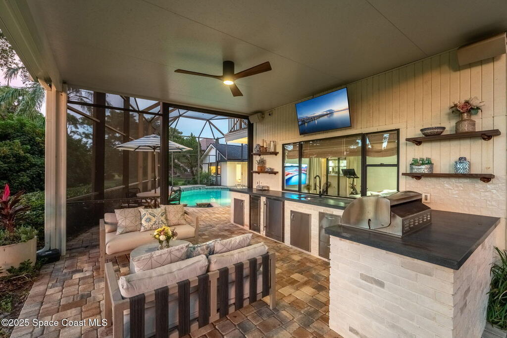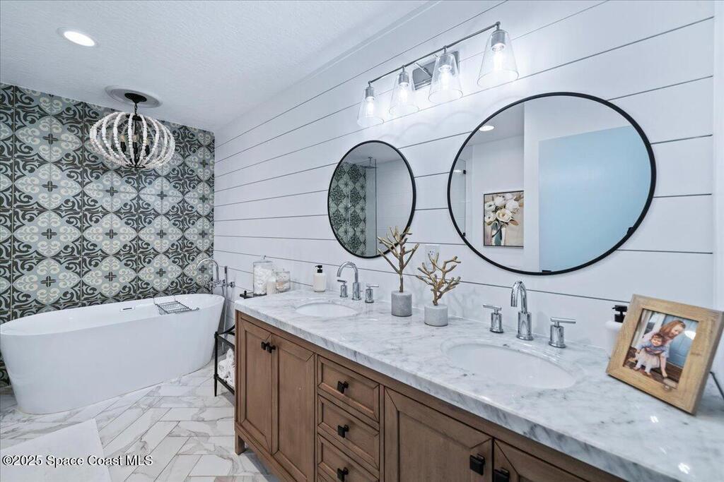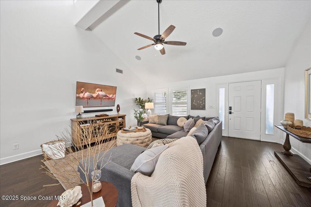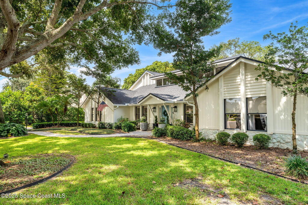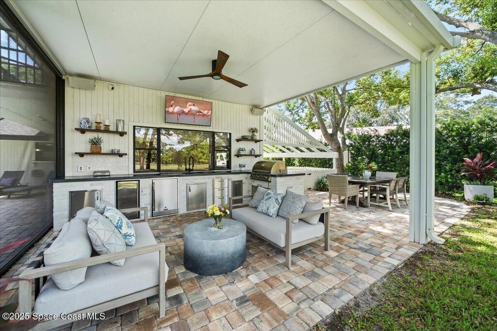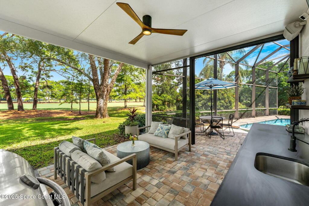 Welcome to 610 Woodbridge Drive, where celebrity-level design meets an unrivaled setting on the 18th hole of Suntree Country Club, Brevard's most exclusive Golf and Tennis Club. Homes along this stretch rarely come to market, making this a truly exceptional opportunity. Featured on Houzz TV's ''My Houzz: Kate Upton's Surprise Renovation,'' this 4-bedroom, 3.5-bath, 3,340 sq. ft. residence was reimagined in 2019 by renowned designer Motivo Home, who delivered curated updates to the primary suite, guest bath, and private office retreat. That same year a new roof was installed, with additional enhancements in the years following, including new pavers on the driveway and pool deck, a turf side yard, and extensive landscape upgrades.Positioned on a wide, private cul-de-sac lot, the home offers both prestige and seclusion, an unparalleled combination within Suntree's most desirable enclave.
