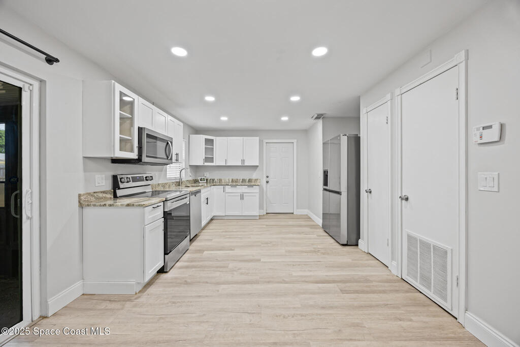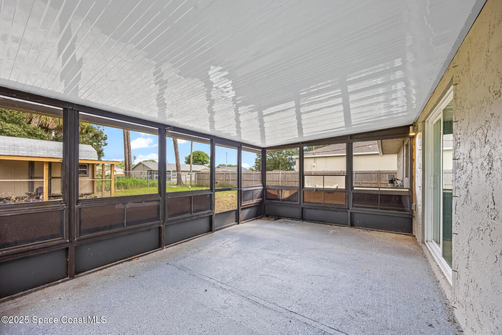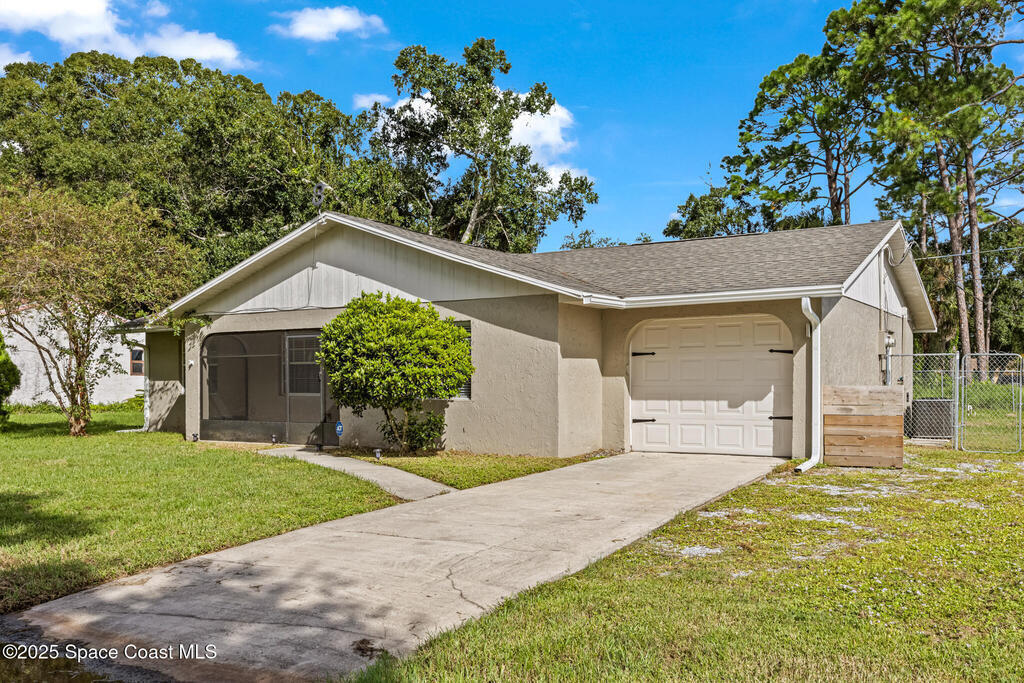 This charming home is in a prime location in Palm Bay close to everything you could want. This lovely home is 3BD, 2BA, and 1CG that offers the perfect blend of modern luxury & comfort. A newer roof/AC/water heater ensures durability, while the interior showcases updated flooring, new appliances, and open layout. Beautiful updated kitchen with granite countertops with ample room and storage. Updated bathrooms which provide peace and relaxation. This home also provides a screened-in back porch, screened-in front porch, large fenced-in backyard, and a shed for storage. This home is perfect for entertaining inside and out. Don't miss out on your piece of paradise.