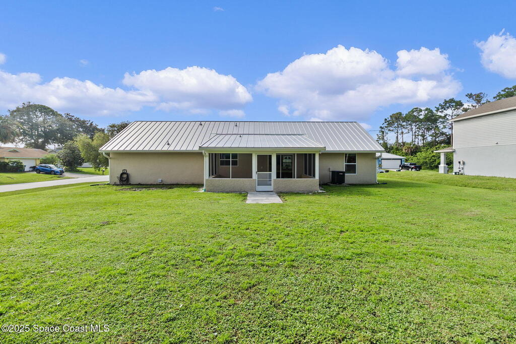 Beautifully renovated corner-lot home in NW Palm Bay, ready for you to move right in! Everywhere you look--it's new! A new metal roof, new AC, new windows, new counters, and stylish new flooring throughout. The kitchen and bathrooms have been fully updated for modern comfort and convenience. And don't miss the screen-enclosed sunroom--a bright, breezy bonus space perfect for morning coffee, weekend lounging, or evening dinners without the mosquitos. Sitting on an oversized 0.3-acre lot, there's space to spread out and enjoy the peaceful neighborhood. Don't wait--schedule your private showing today!