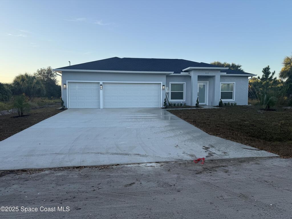 Welcome to this beautifully crafted, brand-new single-story home scheduled for completion in November 2025. With 4 spacious bedrooms and 2 full baths 3CAR GARAGE!, this home is perfect for the growing family or those looking to retire in comfort. Listed at $375,000, it offers excellent value at approximately $209 per square foot. Full 3-car garage -- a rarity in new construction at this price point. High-end finishes: vinyl plank flooring, tiled showers, all white plywood cabinetry, and a stylish kitchen backsplash. Impact-rated windows and doors provide peace of mind and durability. 10-foot ceilings elevate the open-concept interior space, creating a light and airy feel. Split-bedroom design with an open floor plan gives privacy and flow for everyday living as well as entertaining. No HOA to worry about--offering flexibility and lower monthly costs. Excellent location just minutes away from the Bayside Lakes area, key amenities including a supermarket (Publix), high school and more!
