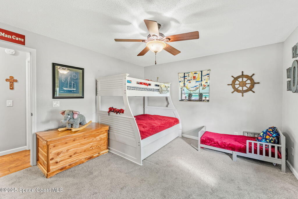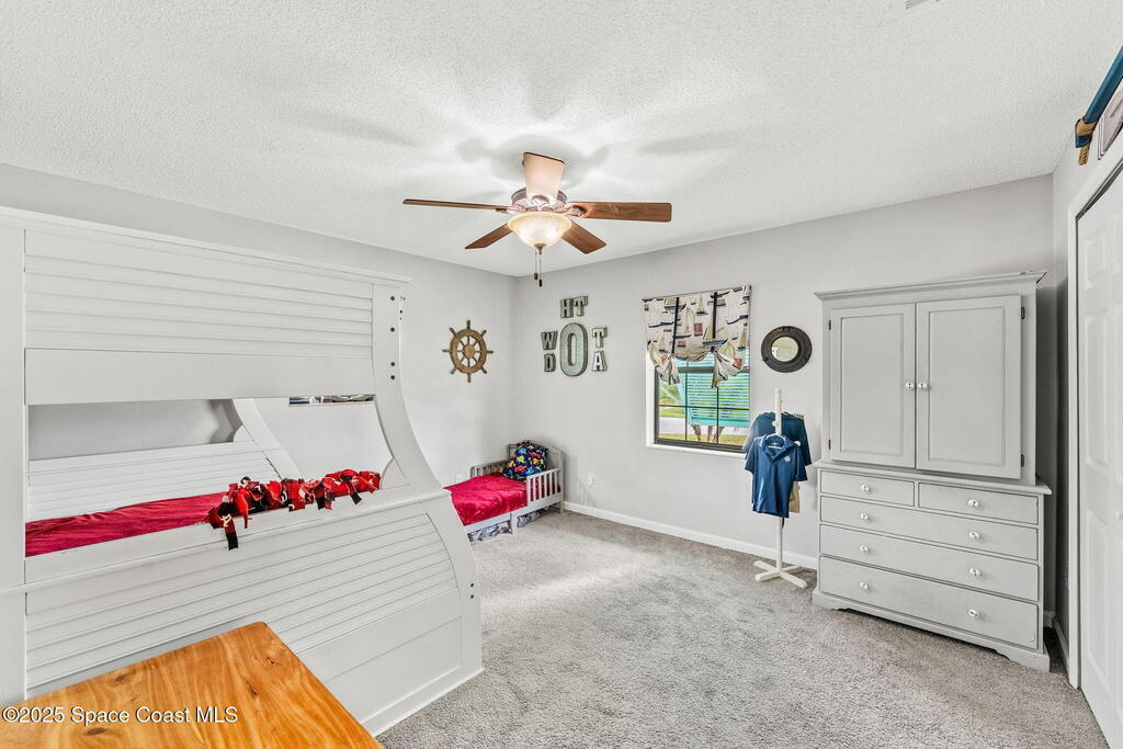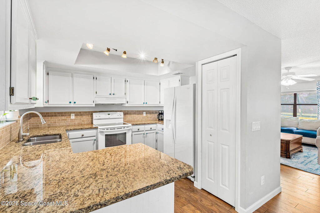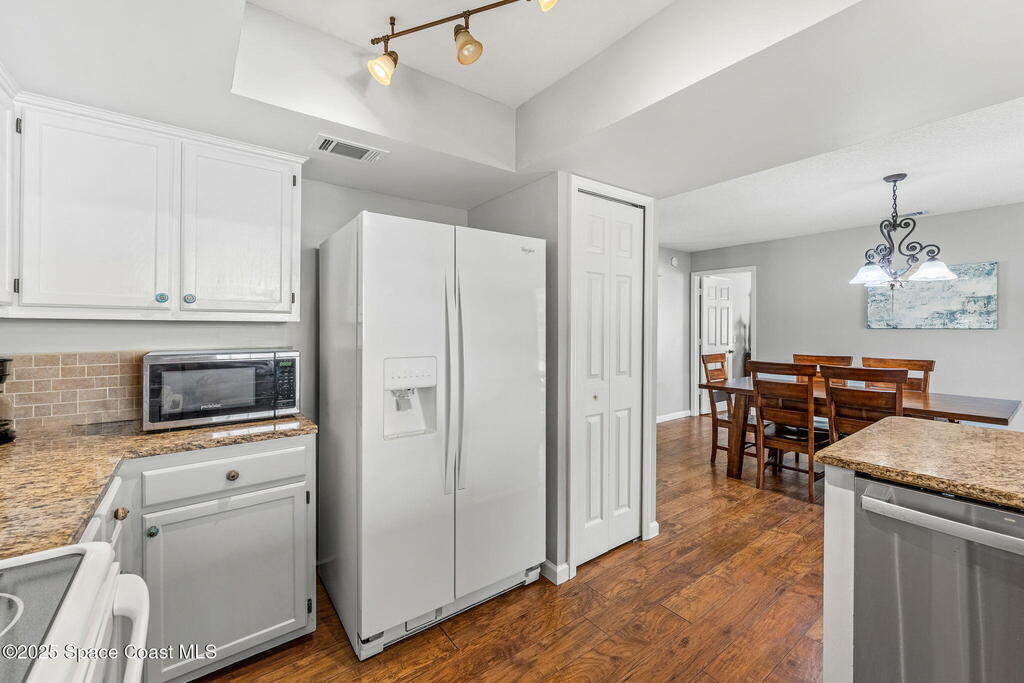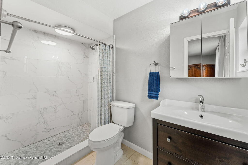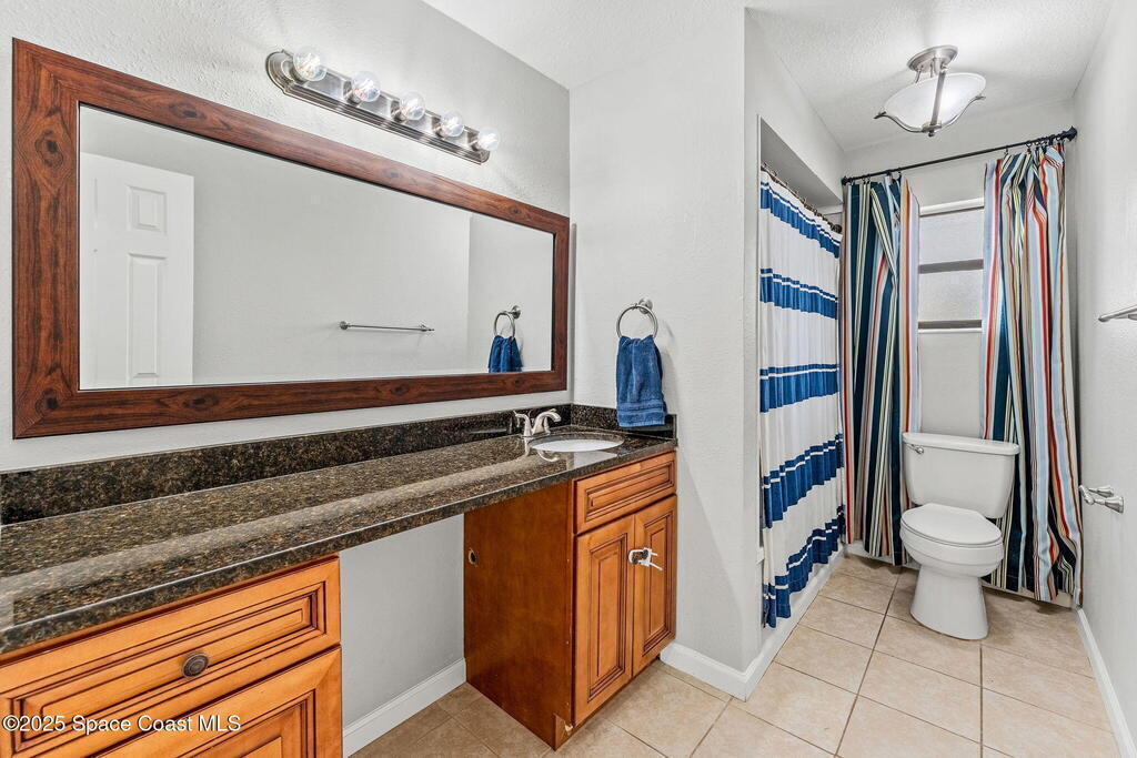 Set on a corner lot in NW Palm Bay, this 1,513 sq ft residence combines open, airy living with thoughtful updates and inviting outdoor spaces. A split floor plan and vaulted ceilings enhance the sense of comfort, while the primary suite stands apart with a walk-in closet and a renovated en-suite featuring a sleek walk-in shower. Durable vinyl plank flooring and granite countertops add modern appeal, complemented by the security of a 2019 roof. Bahama shutters remain in place year-round, offering shade that helps keep interiors cooler in summer while closing easily for hurricane preparation. The fenced backyard offers both privacy and character with mature avocado and banana trees creating a touch of tropical charm. With no HOA restrictions, the property allows freedom and flexibility. Everyday convenience is close at hand with shopping and dining just minutes away, I-95 access nearby, and the Atlantic shoreline in Melbourne Beach and Indialantic less than a 20-minute drive.