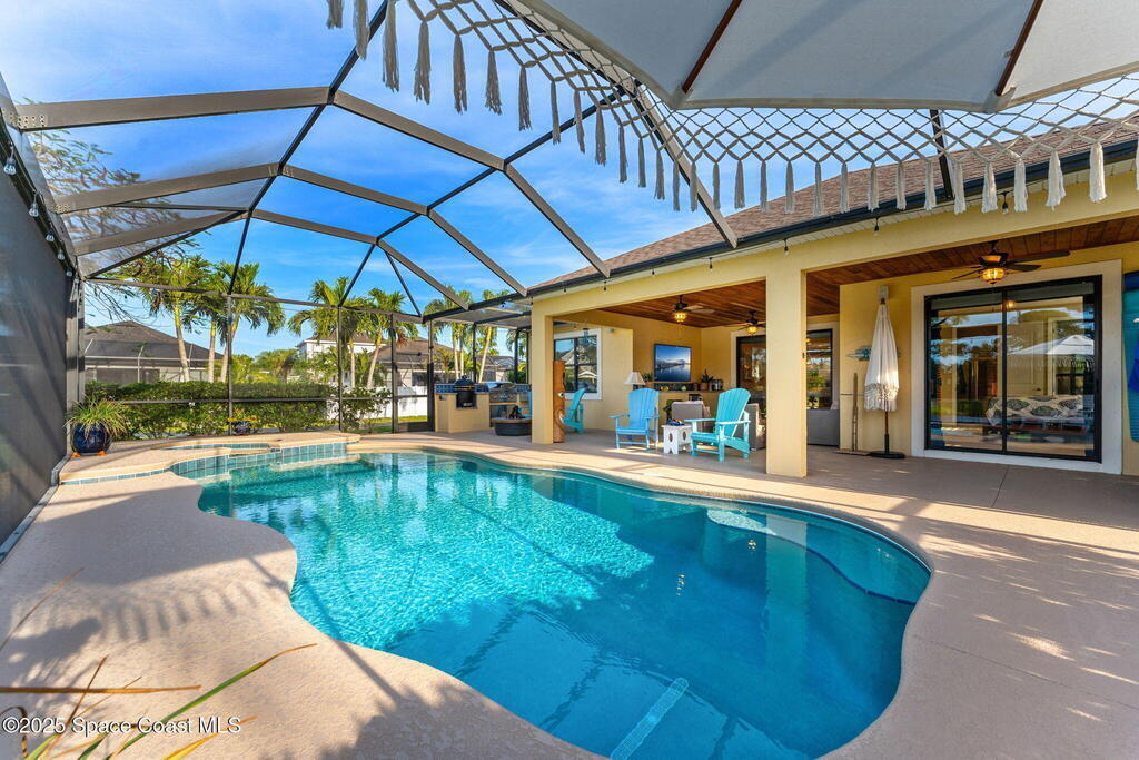 Meticulously maintained 5 bd/4 ba pool home in sought-after Strom Park, where luxury & lifestyle meet. Designed for comfort & entertaining, this home features an extended lanai, a stunning, resort-style pool w/ waterfall spa, outdoor kitchen w/ smoker & large gas grill, natural gas fire pit, & upgraded picture-window enclosure for breathtaking views. Inside, discover shaker-style solid maple cabinetry w/pull-out drawers, premium granite, appliances, and flooring throughout. The primary suite offers private lanai access, soundproofing & a spa-inspired bath. Upstairs bonus room to use as you wish. Thoughtful extras include a whole-home audio system, UV/electrostatic A/C filtration, insulated garage doors w/ epoxy flooring & EV charging station. See documents for all updates-too many to list! Enjoy peaceful living close to top schools, shopping, dining & beaches. Schedule your private tour now! Listing agent is also seller.