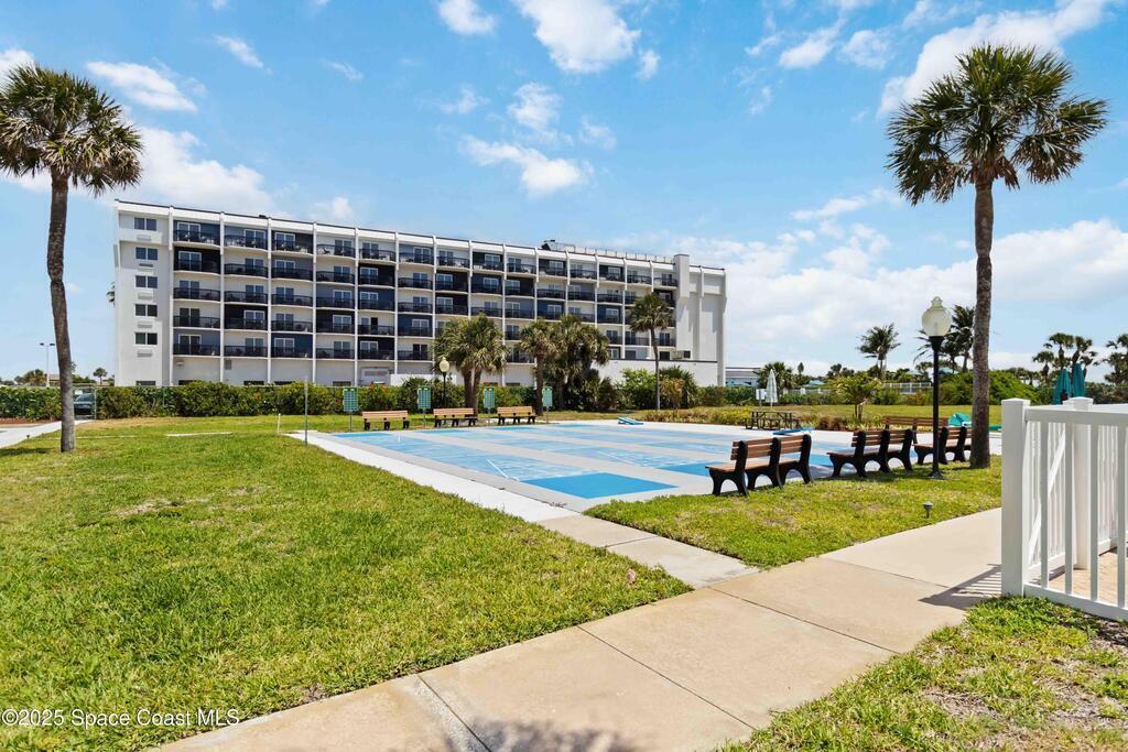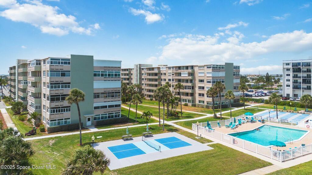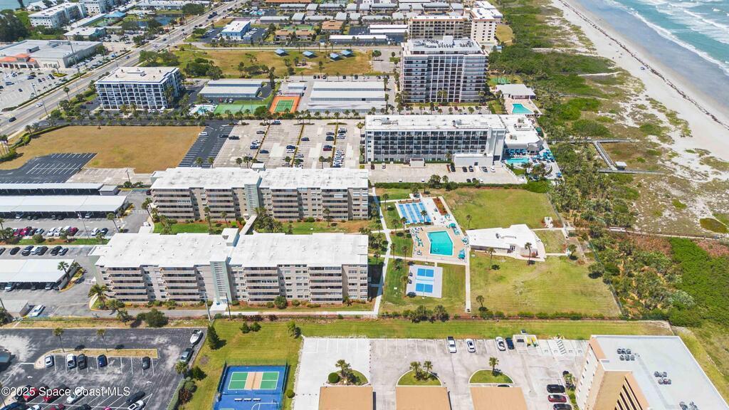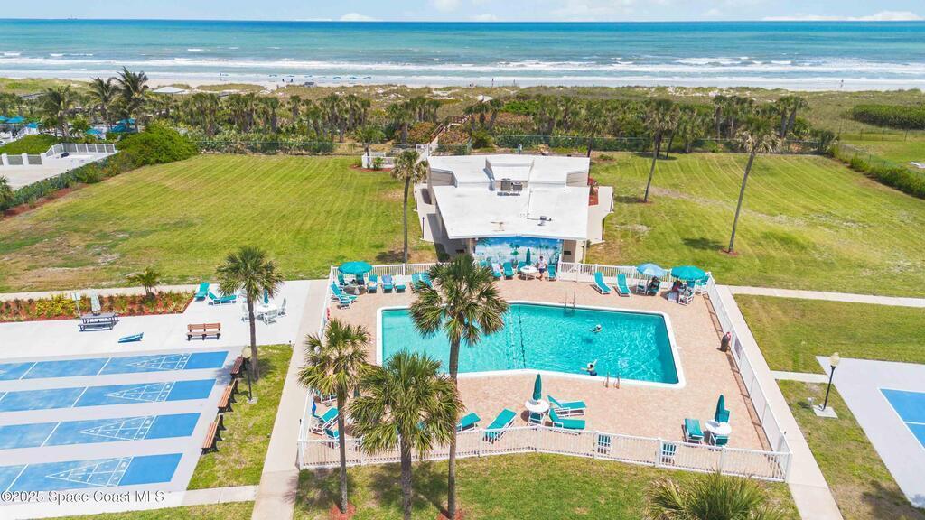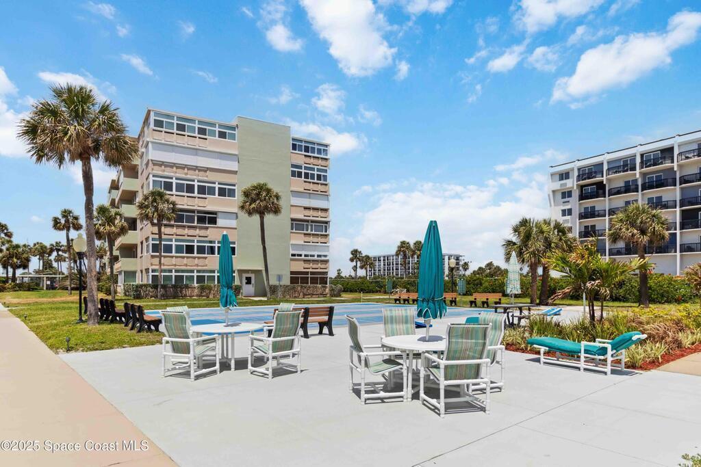 Bright and spacious 1-bedroom corner unit with wraparound balcony offering ocean views and exceptional storage. Open-concept living and dining area filled with natural light. Kitchen features ample cabinetry and a large pantry. Hallway includes utility, linen, and hall closets for added convenience. Spacious bedroom fits a king-sized bed and has its own impact slider to the balcony. Rare full-length private storage closet, perfect for bikes, boards, fishing poles, and more. Additional shared storage near community laundry. Secure lobby, plus access to pool, pickleball, clubhouse, shuffleboard, and private beach access. Located in the heart of Cocoa Beach, just steps from dining, shopping, and entertainment. Perfect for full-time living or a beachside getaway.