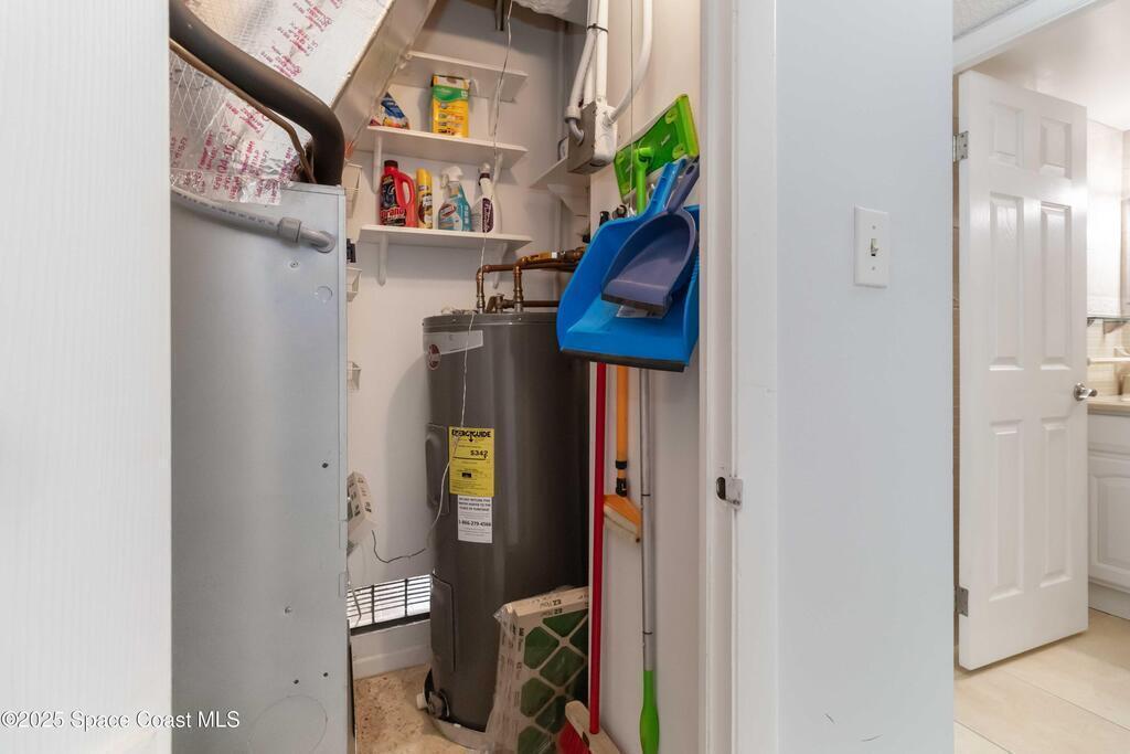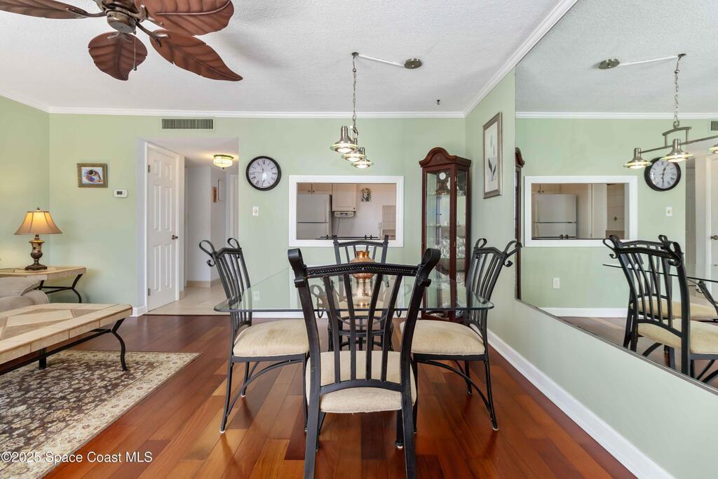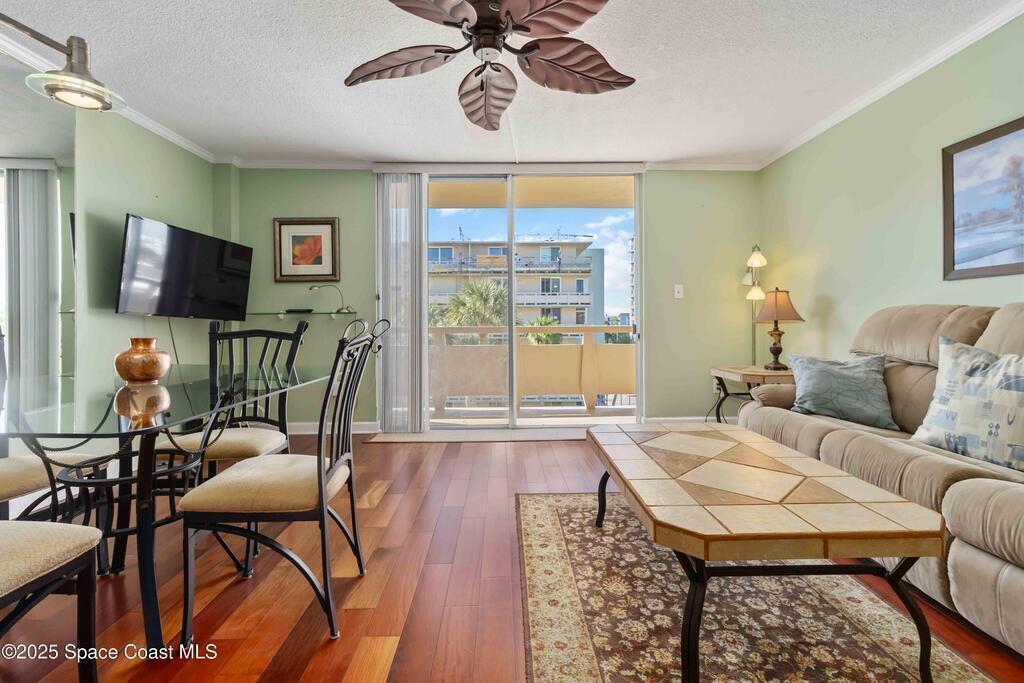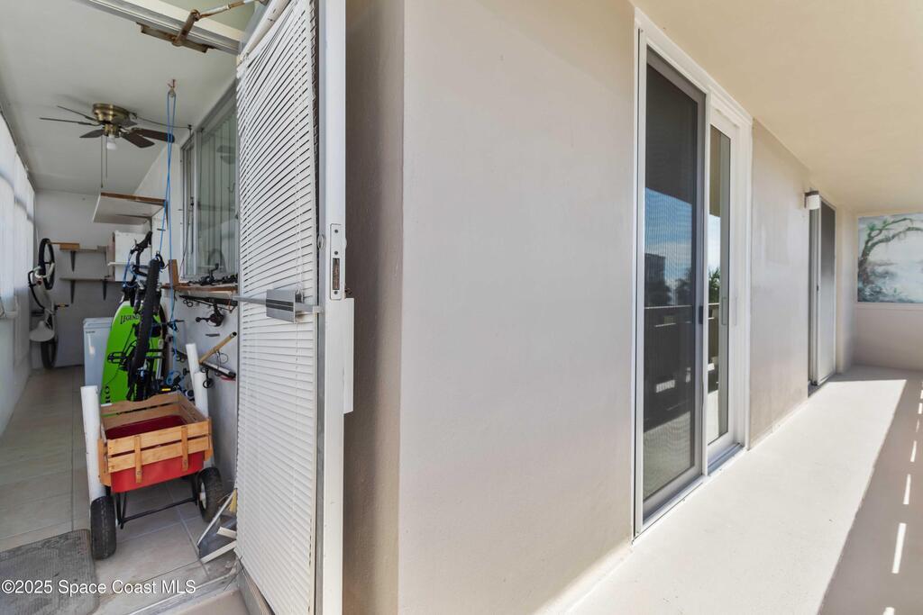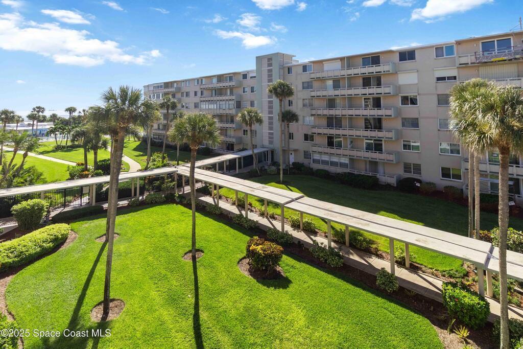 Bright and spacious 1-bedroom corner unit with wraparound balcony offering ocean views and exceptional storage. Open-concept living and dining area filled with natural light. Kitchen features ample cabinetry and a large pantry. Hallway includes utility, linen, and hall closets for added convenience. Spacious bedroom fits a king-sized bed and has its own impact slider to the balcony. Rare full-length private storage closet, perfect for bikes, boards, fishing poles, and more. Additional shared storage near community laundry. Secure lobby, plus access to pool, pickleball, clubhouse, shuffleboard, and private beach access. Located in the heart of Cocoa Beach, just steps from dining, shopping, and entertainment. Perfect for full-time living or a beachside getaway.