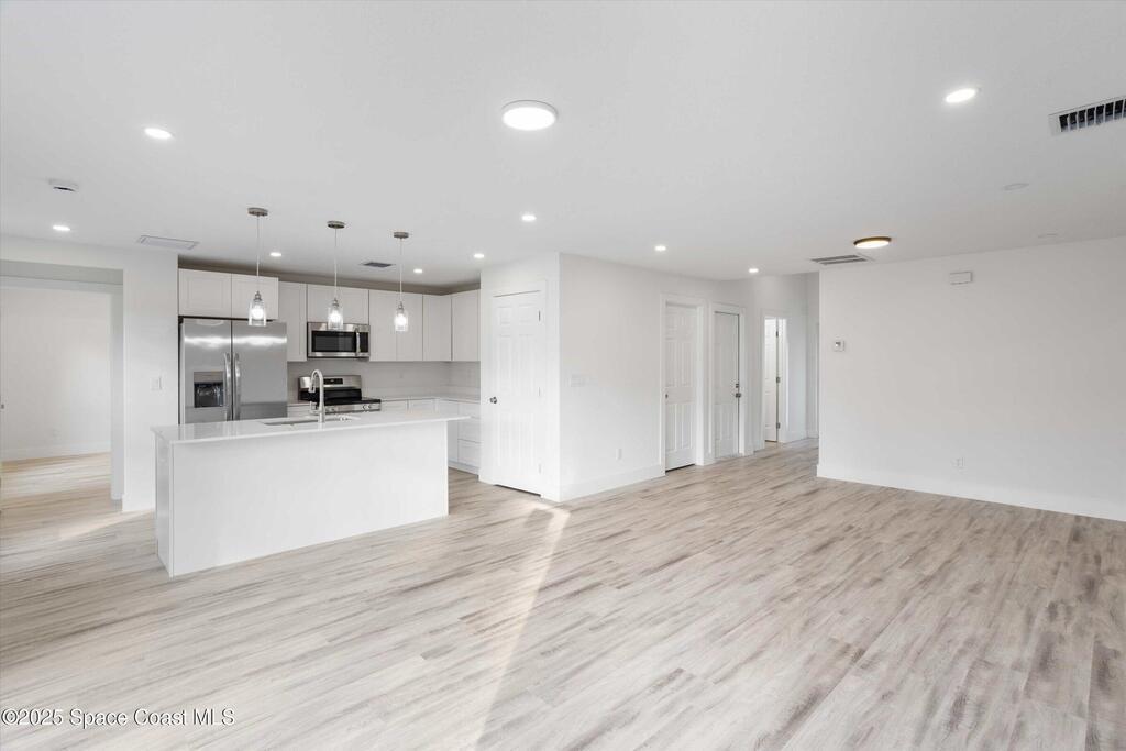 This beautiful house has a modern design with 4 bedrooms and 2.5 baths, including a convenient half bath for guests. High ceilings and an open floor plan connects living areas, large kitchen with stainless steel appliances, island and breakfast counter. The property has a large lot, with space to install a pool. With impact windows, inside laundry and a two-car garage, this home is truly designed for comfortable, contemporary living.