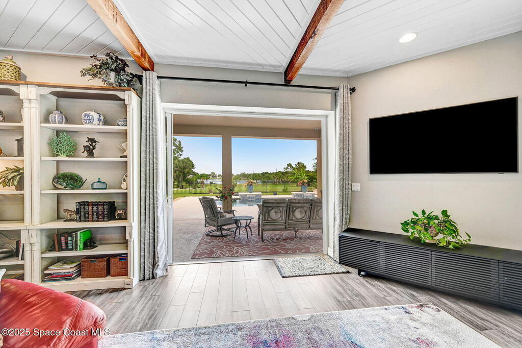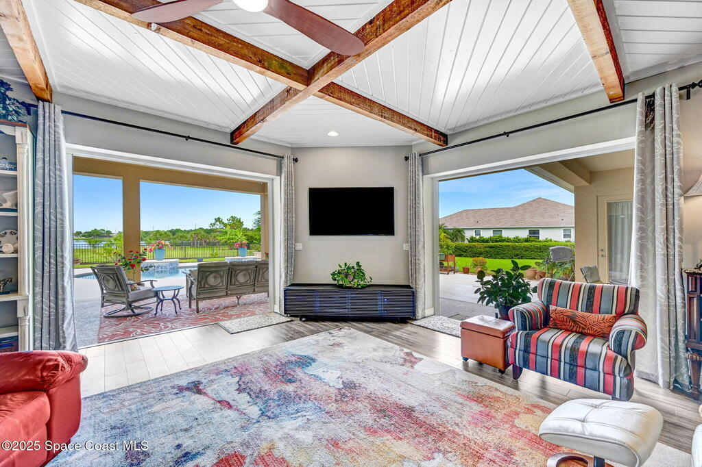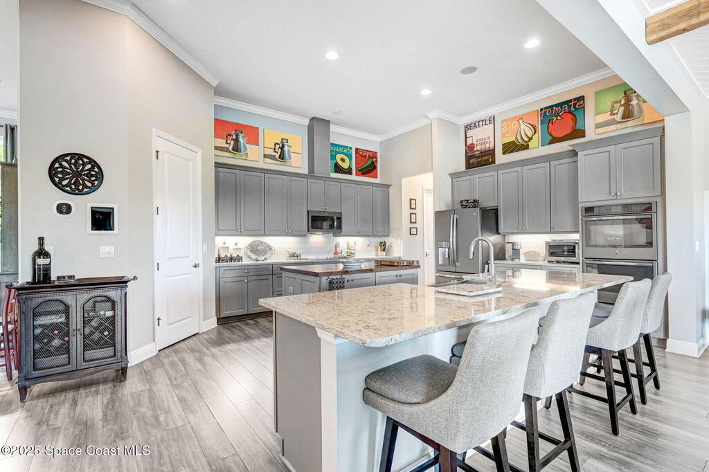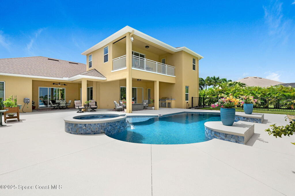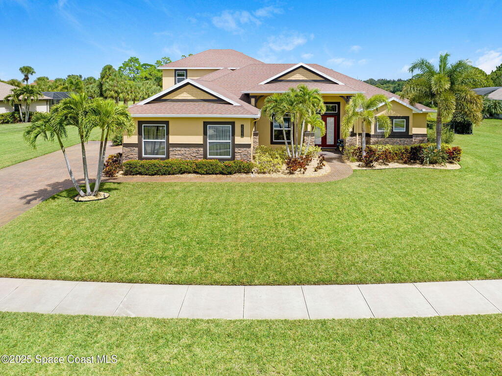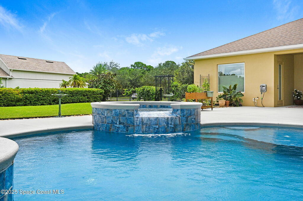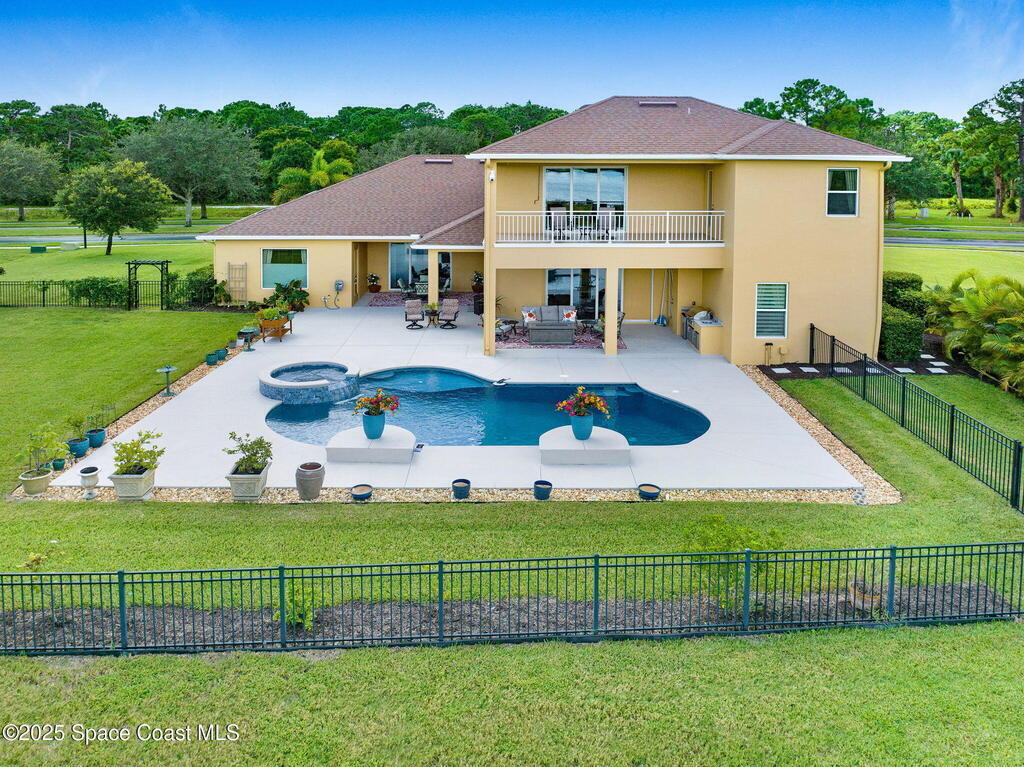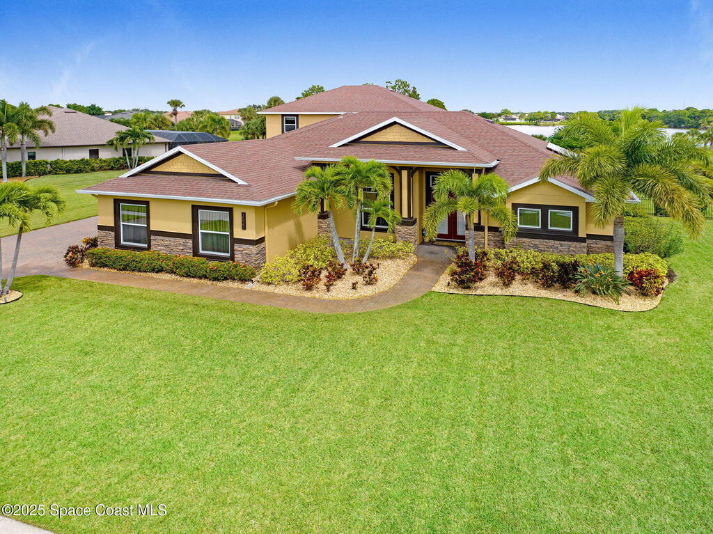 Want to own THE MODEL HOME in the neighborhood? Situated on ONE FULL ACRE and a NATURAL LAKE, this 4 BEDROOM, 4 BATH 3,700 sqft home is FENCED-IN and features a NEW SALT WATER, HEATED POOL (2023) and many UPGRADES. Updates and upgrades in this ENERGY-EFFICIENT CONCRETE BLOCK home include: NEW HVAC (2025), Cambria QUARTZ countertops, HURRICANE IMPACT sliders, $10,000 WALNUT ISLAND, interior and EXTERIOR REPAINT (2025), EV CHARGER for electric cars, REMOTE-CONTROLLED BLINDS, electric HEATED TOWEL BARS on SMART switch (2023), KASA SMART switches, EUFY doorbell and SMART thermostat, AMCREST security cameras, SOLAR PANELS (fully paid for!), double pane LOW-E WINDOWS with HURRICANE SHUTTERS, and NEW IRRIGATION pump (2024). Your own BANANA and MANGO TREES are in the backyard! PRIMARY bedroom is DOWNSTAIRS. Laundry room has ADDITIONAL CABINETRY. Second floor can be utilized as an ''apartment suite'' for multi-generational living or as a GAME ROOM. This gorgeous home is NOT IN A FLOOD ZONE.