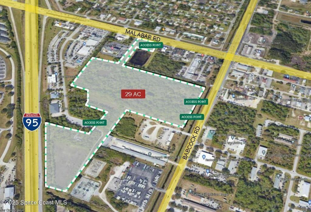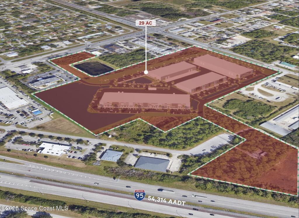 This 30-acre spot in Palm Bay, right at Malabar Road and Babcock Street, is primed for flex or light industrial builds, with ready concepts over 200,000 SF plus an out parcels. Flat terrain and stable sandy soils make foundations straightforward based on the 2022 geotech report, with a clean Phase I ESA showing no major environmental red flags, low flood risk in Zone X, and just minor wetlands needing basic mitigation. It's under a half mile from I-95, pulling in 55,000+ vehicles daily on Malabar for solid visibility and access.Palm Bay's market is heating up in 2025, with the city's population hitting around 146,000 (up 3.65% yearly) and Brevard County's unemployment at a low 4.3%. The industrial/flex sector is strong, boasting 4.49% absorption and rents climbing to $14-17/SF NNN, making flex park the top play under CC/IU zoning with up to 0.5 FAR. Completed I-95 upgrades in 2026 boost connectivity and long-term upside.