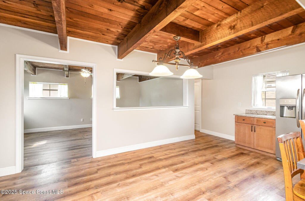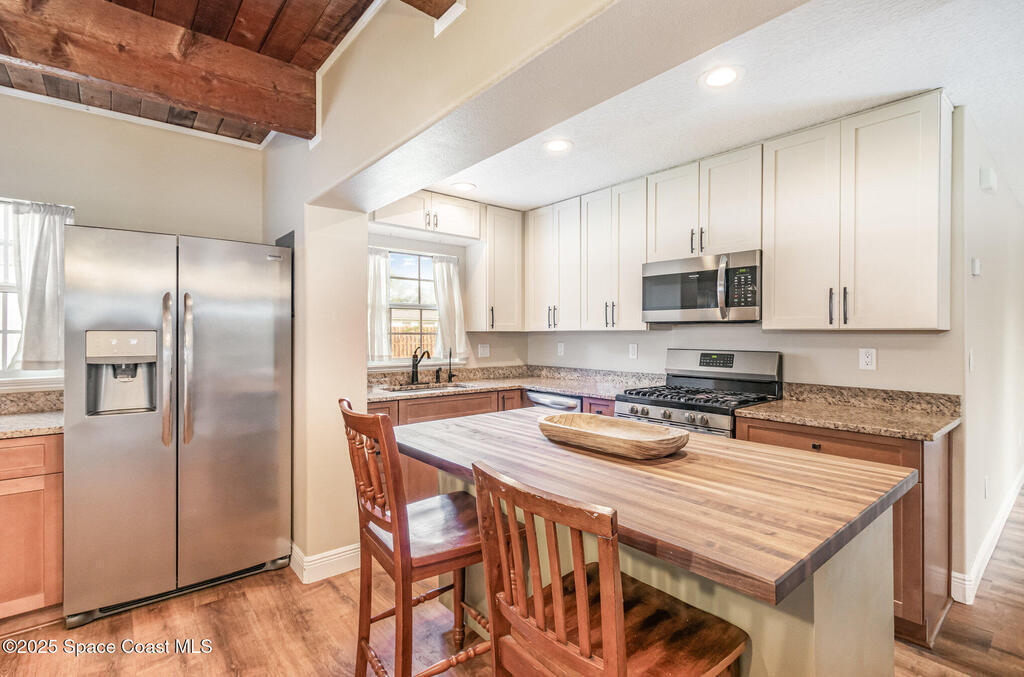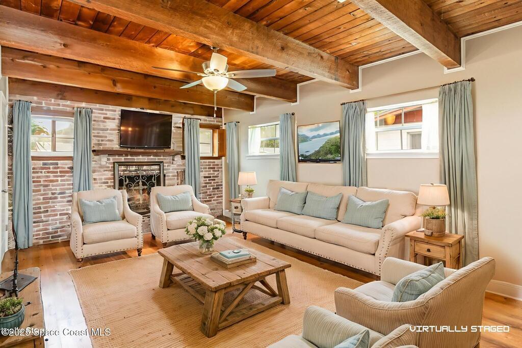 Your Coastal Escape: Modern Comforts + Endless Possibilities! Spacious and updated, this 2,092 sq. ft. home offers the perfect blend of charm and modern upgrades. Inside, you'll love the warm exposed western cedar planks in the living room, a cozy wood-burning fireplace (chimney rebuilt 2019), and a beautifully remodeled kitchen with granite counters, gas stove, and coffee bar. Major improvements include a new septic system (2024), Generac generator (2023), mini-split A/C in the primary suite (2025), water heater (2019) and water treatment with PFAS removal, reverse osmosis, and softener. Outdoor living shines with new irrigation, well pump, lighting, and lush zoysia grass (2024). Property also features 2 driveways, 2-story workshop with overed carport-type work area --perfect for projects or storage and room for your boat and cars. No cast iron plumbing. Enjoy peace of mind plus quick access to beaches, Kennedy Space Center, Orlando, maj& or highways. Some pictures virtually staged.
