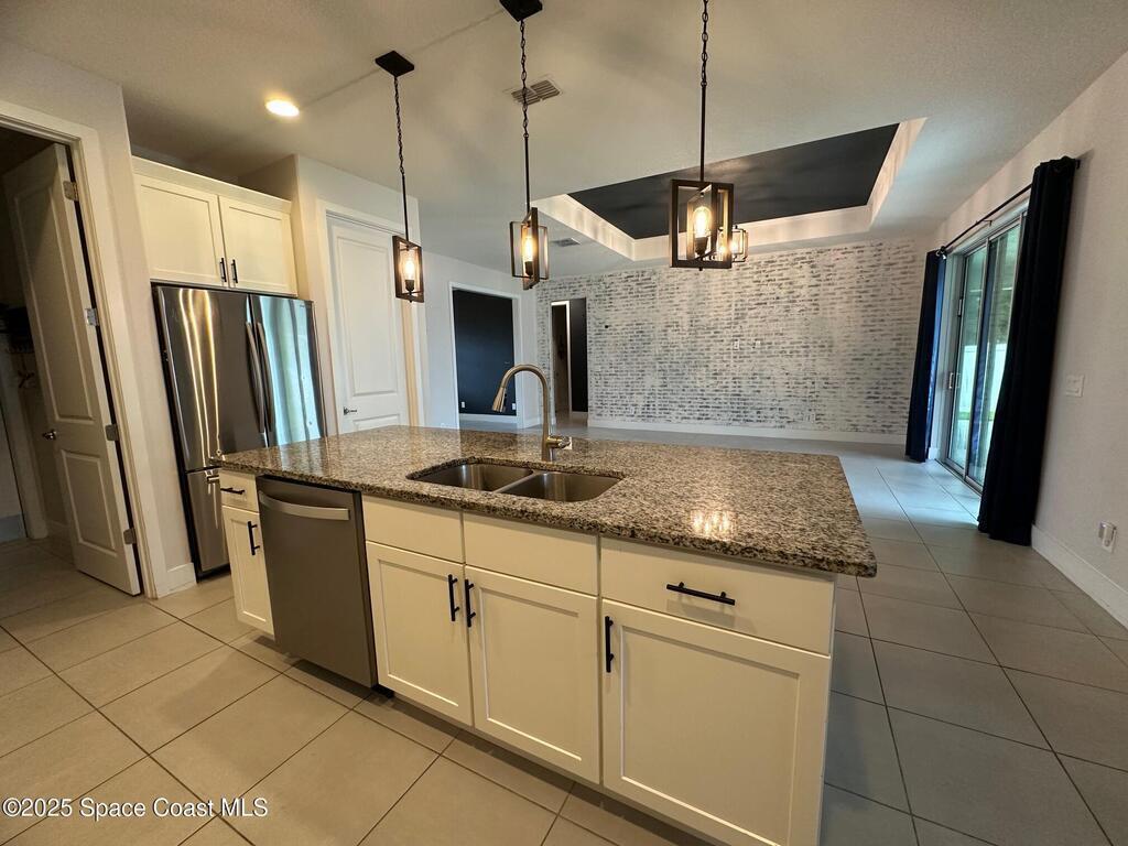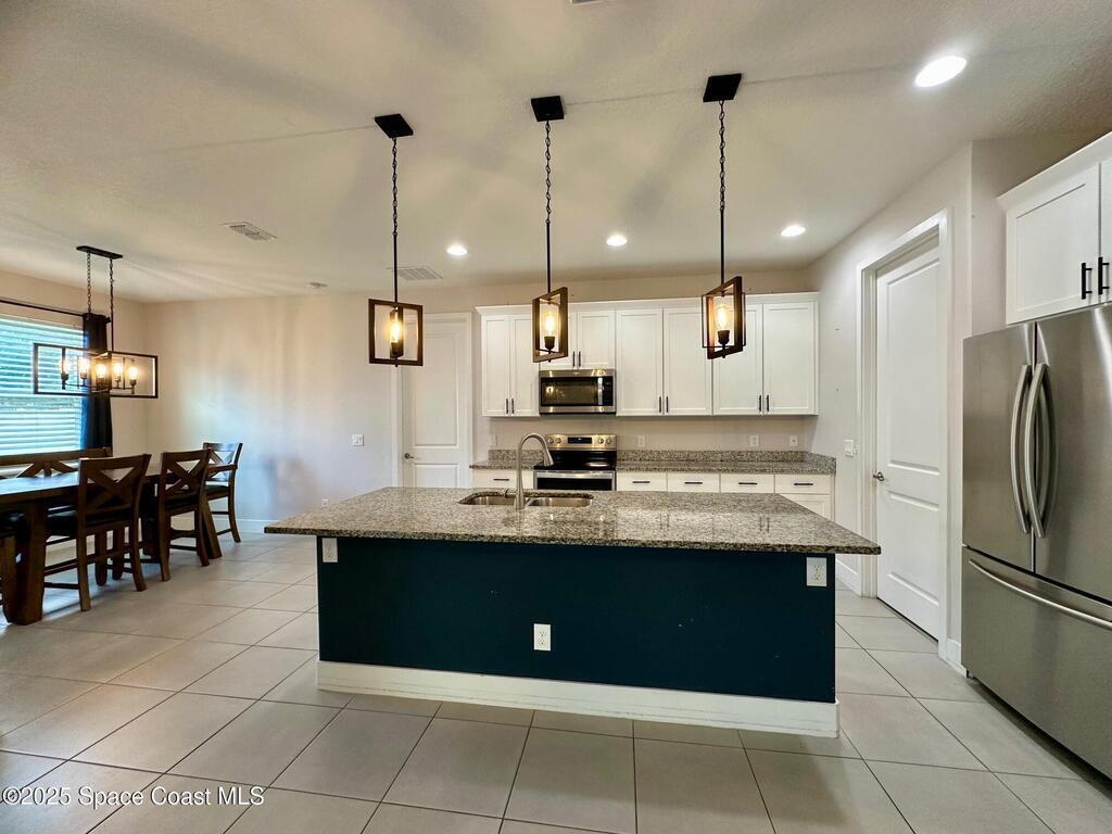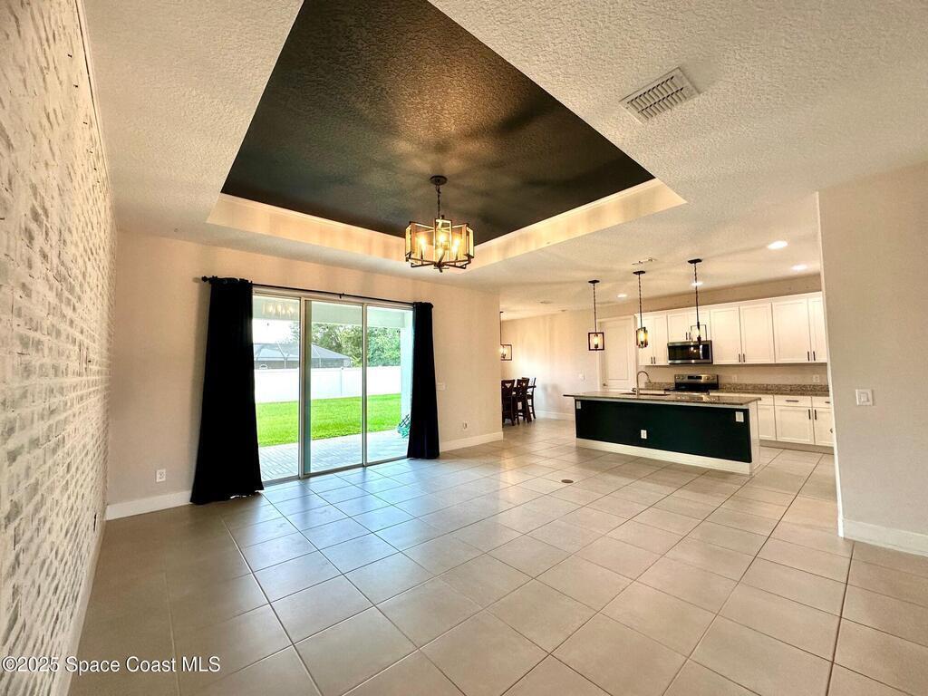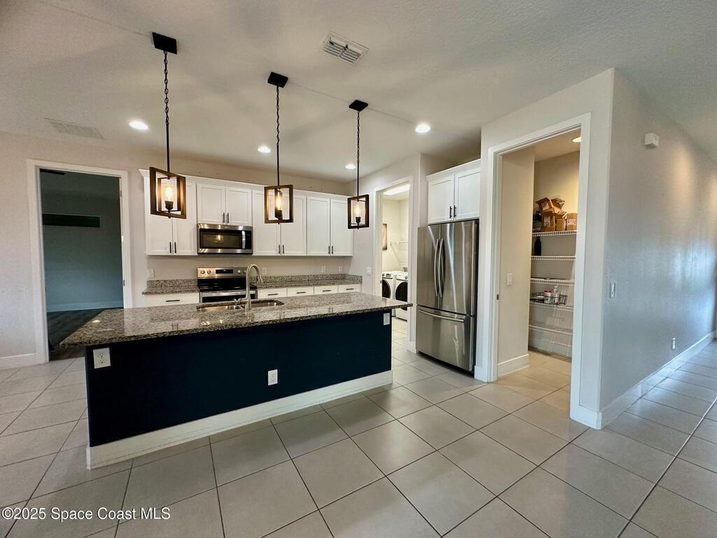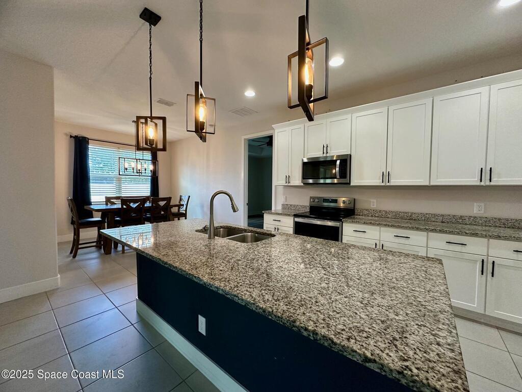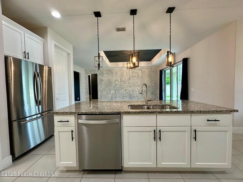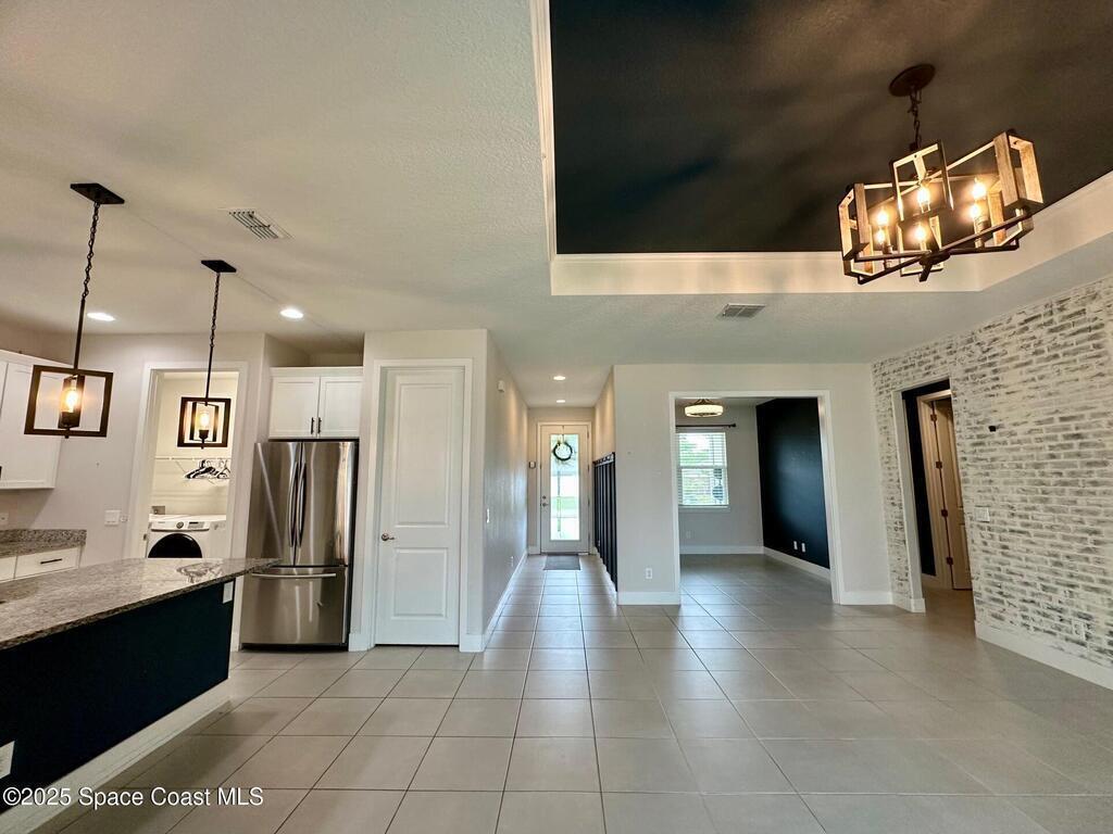 MOTIVATED SELLERS! Welcome to this spacious 3 Bedroom + Flex Room | 2 Bath | 3x Car Garage beauty on City Water and Sewer, featuring nearly 2,000 sq.ft. of living space and loaded with premium builder upgrades. This home offers a unique and extended 3-car garage, 9-ft custom doors, custom wall designs, elegant tray ceilings, a 3-panel glass slider, and new waterproof wood vinyl flooring throughout (No carpets). The chef's kitchen showcases a large island, granite countertops, pendant and designer light fixtures, stainless steel appliances, and a walk-in pantry. The Owner's Suite impresses with double walk-in closets and a spa-like bath, while the dedicated laundry room includes a washer and dryer. Step outside to enjoy beautiful landscaping, a fully fenced yard with custom swing gates, and a spacious backyard with an extended lanai--ideal for adding a pool or entertaining. This home is truly turn-key and ready for new owners. Bring Your Offers!