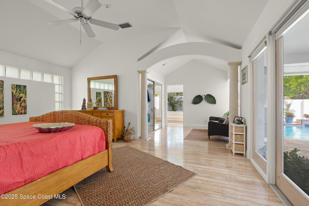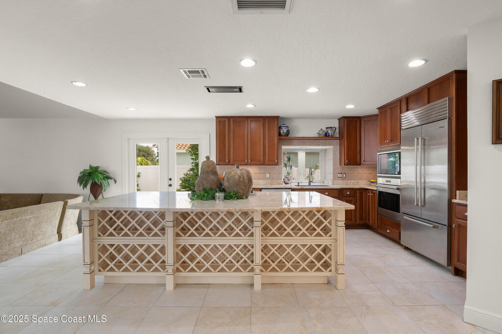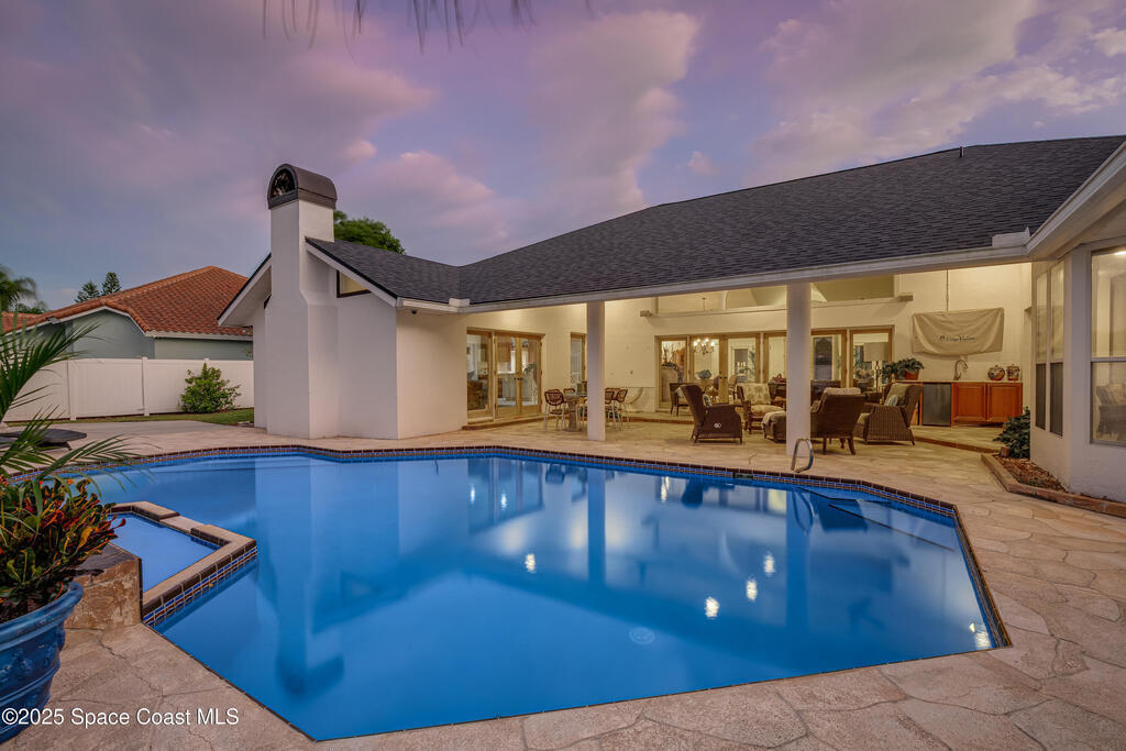 Welcome to beachside luxury living! This concrete block former DiPrima model home sits on an oversized 0.42-acre lot in coveted Rio Villa North. Recently refreshed with new interior and exterior paint, it offers a bright, open floor plan with abundant natural light and thoughtful upgrades throughout. The high-end kitchen boasts quartzite countertops, Sub-Zero/Wolf appliances, a large island, and a butler's pantry.Multiple living areas flow seamlessly to the back patio and pool, complemented by a cozy wood-burning fireplace. Upgrades include a new roof (2023), two new Trane HVAC systems, and a brand-new water softener. The spacious primary suite features a large closet and a spa-like retreat.Outdoors, enjoy a reinforced concrete pad for boat storage and a generous backyard designed for entertaining. Just minutes from Paradise Beach and top dining, this home blends luxury, comfort, and location.Don't miss the chance to own one of the neighborhood's finest homes!
