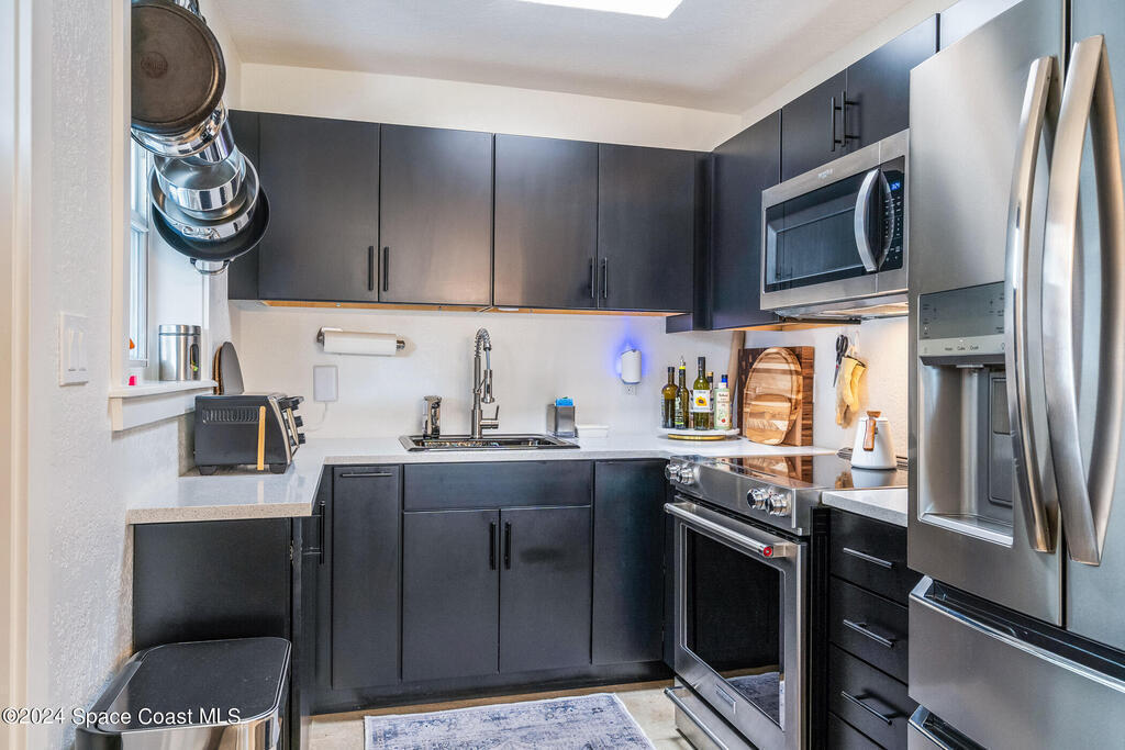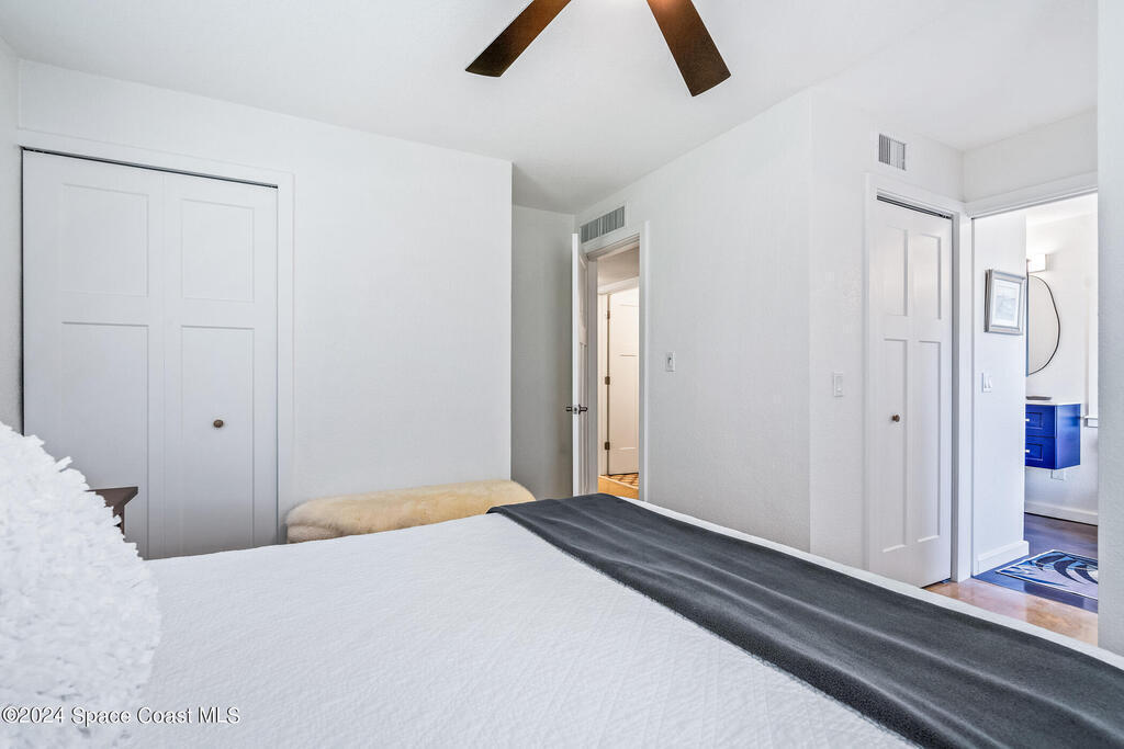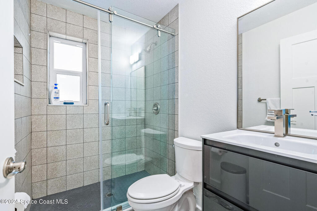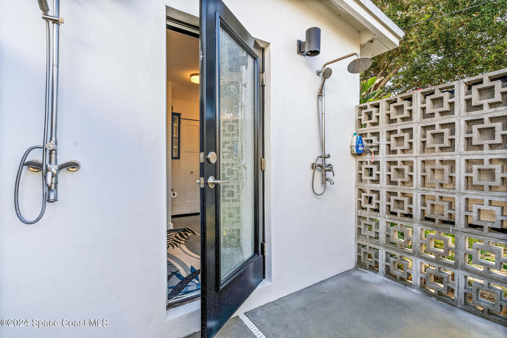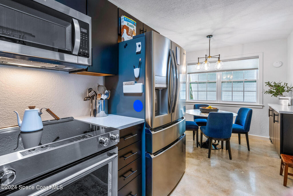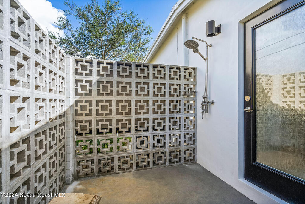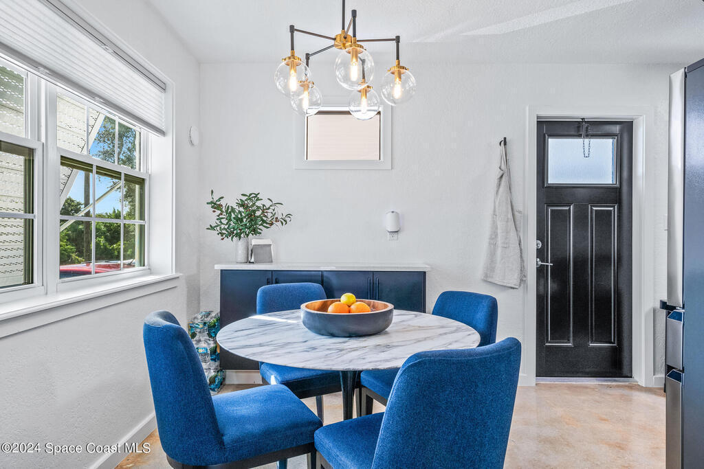 Artfully restored mid-century modern home blending timeless design with modern updates, perfect for downsizers, snowbirds, or STR investors. A newer standing seam white metal roof, impact windows/doors, & rare A-1 insurance rating provide peace of mind & lower insurance costs. Inside, polished concrete floors, vintage-inspired lighting, and custom trim showcase the professional remodel. The chef's kitchen features quartz counters, high-end appliances, Thomasville cabinetry, and a wine cooler drawer. The extended primary suite offers four closets, Indow window inserts for privacy/noise reduction, and a luxurious new bath with double vanities and oversized linen storage. The AC'd guest room adds flexible space for guests or office. Outdoors, enjoy a fenced backyard with a spa-style double shower. With updated systems, full storm protection, and stylish finishes throughout, this home offers low-maintenance living in a prime Vero Beach location.