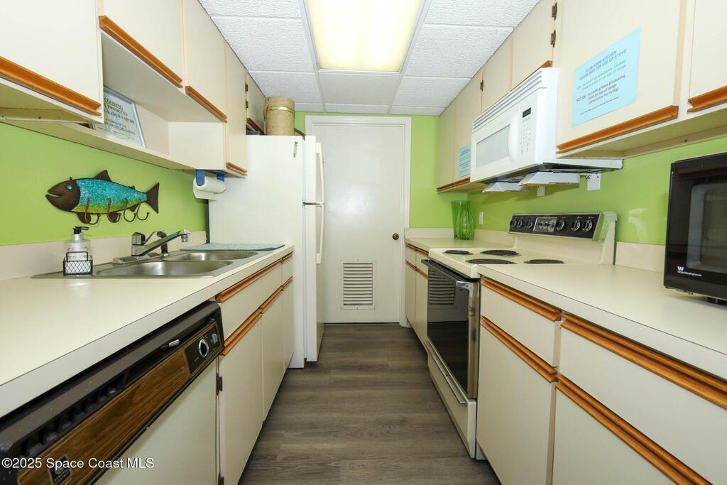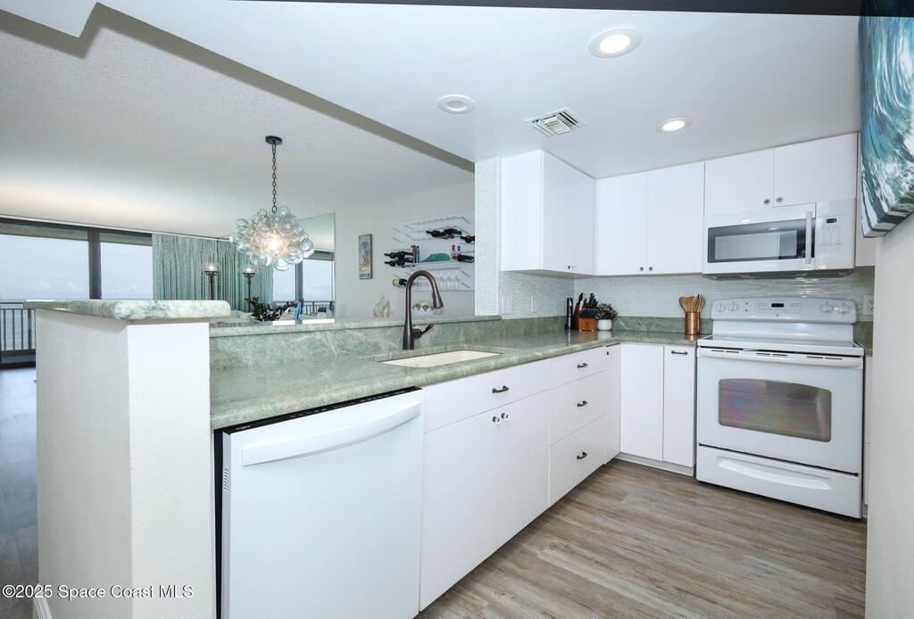 Step inside this thoughtfully remodeled 2-bedroom, 2-bath direct oceanfront condo with a nook/office/flex space, where coastal living meets modern comfort. The open floor plan highlights luxury vinyl plank flooring (2021), fresh interior paint, and a bright, airy design that flows from the welcoming foyer through the dining and living areas. The chef-ready kitchen is positioned with both convenience and style in mind, adjoining a dining room perfect for entertaining. The primary retreat offers a serene escape with sliding glass doors to the balcony, a walk-in closet, and a spa-inspired bath featuring dual sink vanity, soaking tub, and separate shower. A full interior laundry room and ample storage provide everyday practicality, while the second bedroom and bath accommodate family or guests with ease. Open the expansive sets of sliding doors from both the living area and primary suite to step onto your 30-foot-wide balcony.