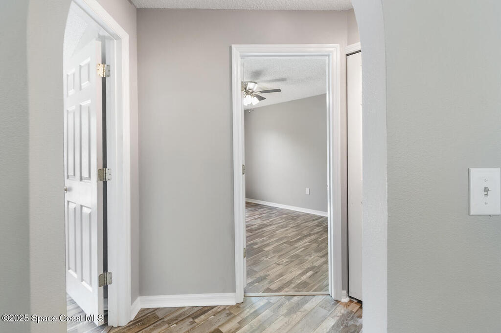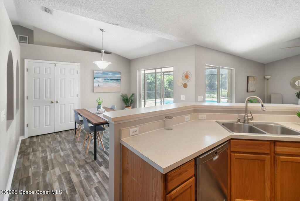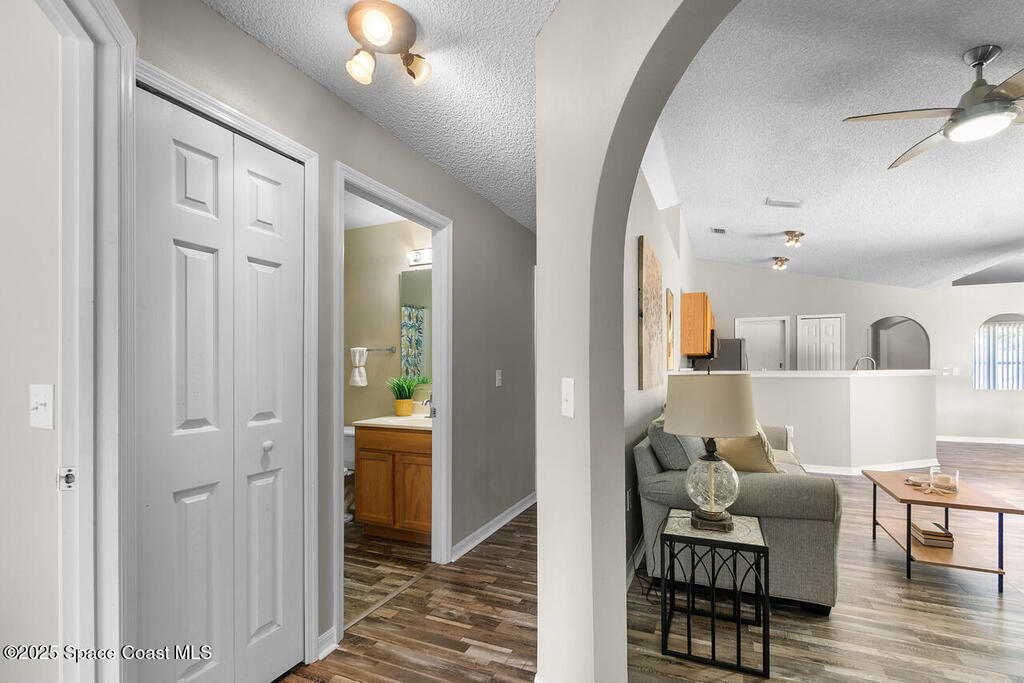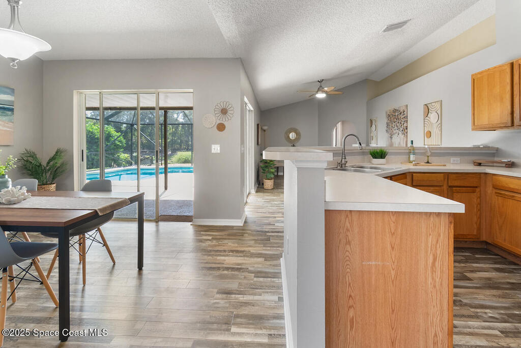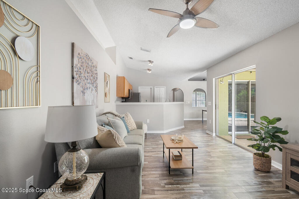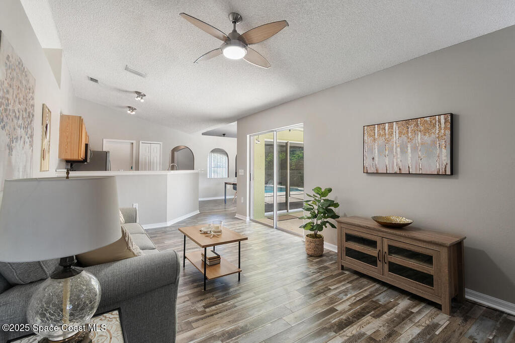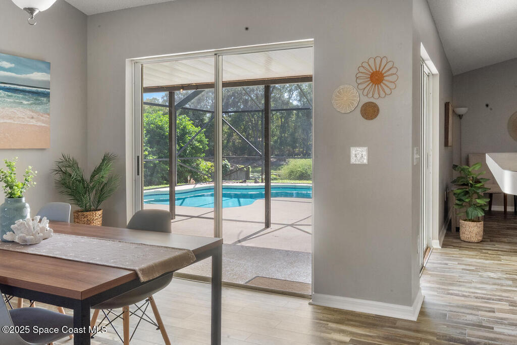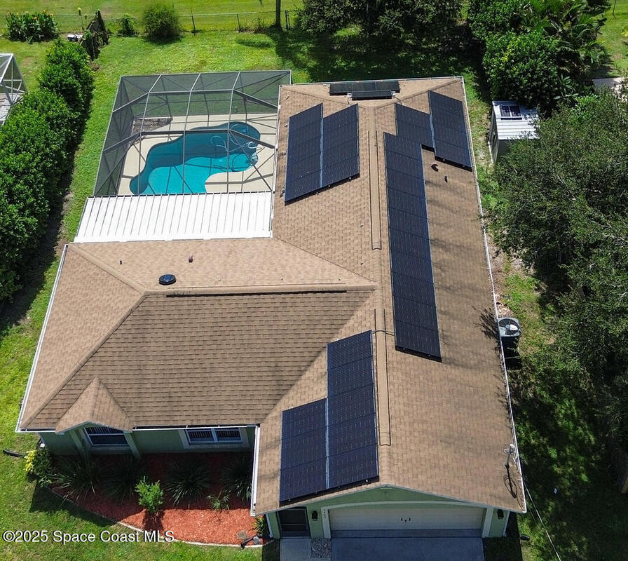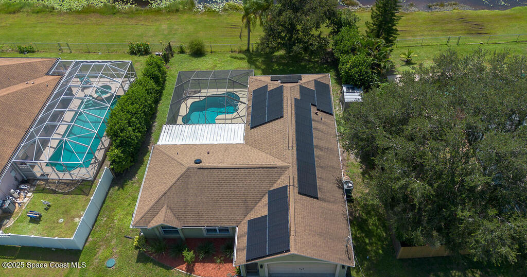 Welcome to your very own slice of Florida living in the highly sought after community of Trails End! This beautiful pool home, built in 2003, sits on a peaceful quarter-acre lot right on a serene pond perfect for relaxing or entertaining while enjoying the view. This home has been thoughtfully cared for, with major updates already done for you: a 2018 roof, 2017 HVAC, and a 2019 water heater. You'll also find whole-house solar panels that are completely paid off, keeping your energy bills low. Inside, the kitchen shines with stainless steel appliances, while the beautiful wood-look LVP flooring seamlessly flows throughout. Other great features include an interior laundry room, hurricane shutters for peace of mind, and a quiet dead-end street with minimal traffic. It's a home that blends modern efficiency, comfort, and an easy Florida lifestyle. Great location with easy access to 524, 528 and I-95 25 minutes to KSC, 38 mins to MCO, 20 mins to Cocoa Beach. This one will not last!