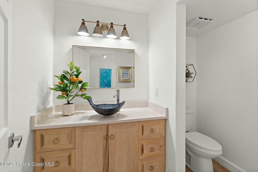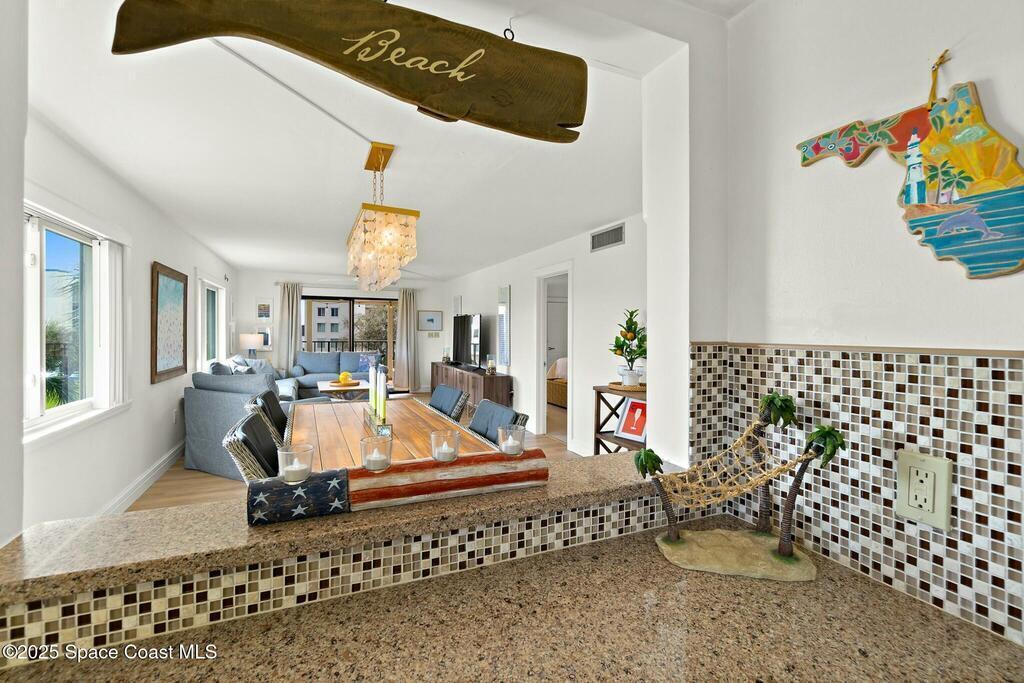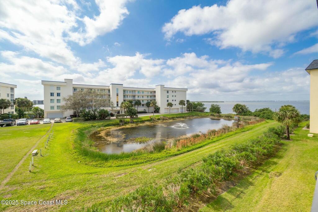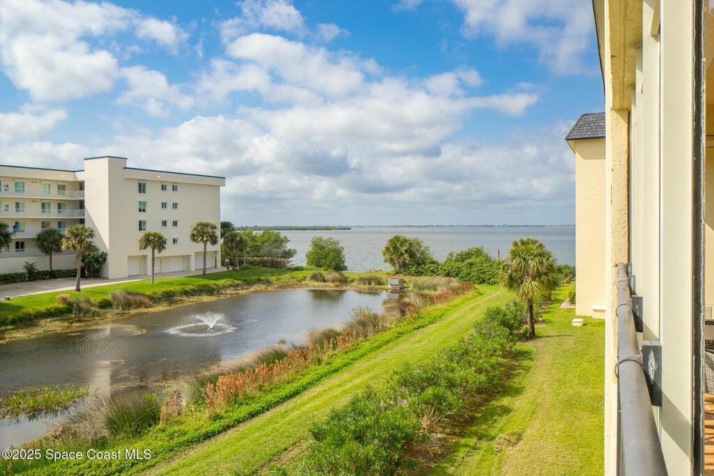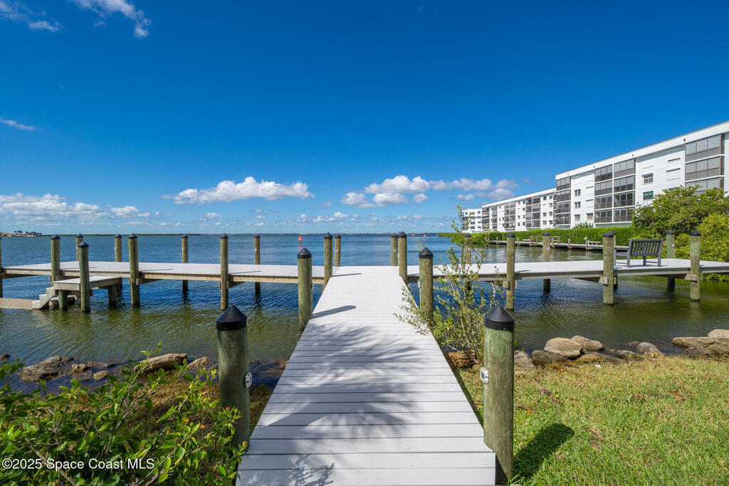 Sleek corner-unit condo blending contemporary flair with easygoing Florida vibes on the Banana River! This freshly revamped retreat offers serene river and pond vistas from a generous balcony--ideal for quiet mornings or taking in beautiful sunsets. Sunlight pours in, accentuating rich luxury vinyl floors, chic tile, and artisanal wood accents. The upgraded granite kitchen shines with soft-close cabinets & handy pantry. Both bedrooms serve as personal havens, each with roomy walk-in closets. The guest suite dazzles with a custom quartz vanity, while the primary suite impresses with dual quartz sinks and a tiled walk-in shower. A trendy updated half bath boosts practicality. The community delivers a shimmering pool and private dock--perfect for casting a line or soaking in the river views. Seize your shot at this stylish treasure in one of Florida's top coastal gems--reach out now to embrace the Cocoa Beach life you've always craved!