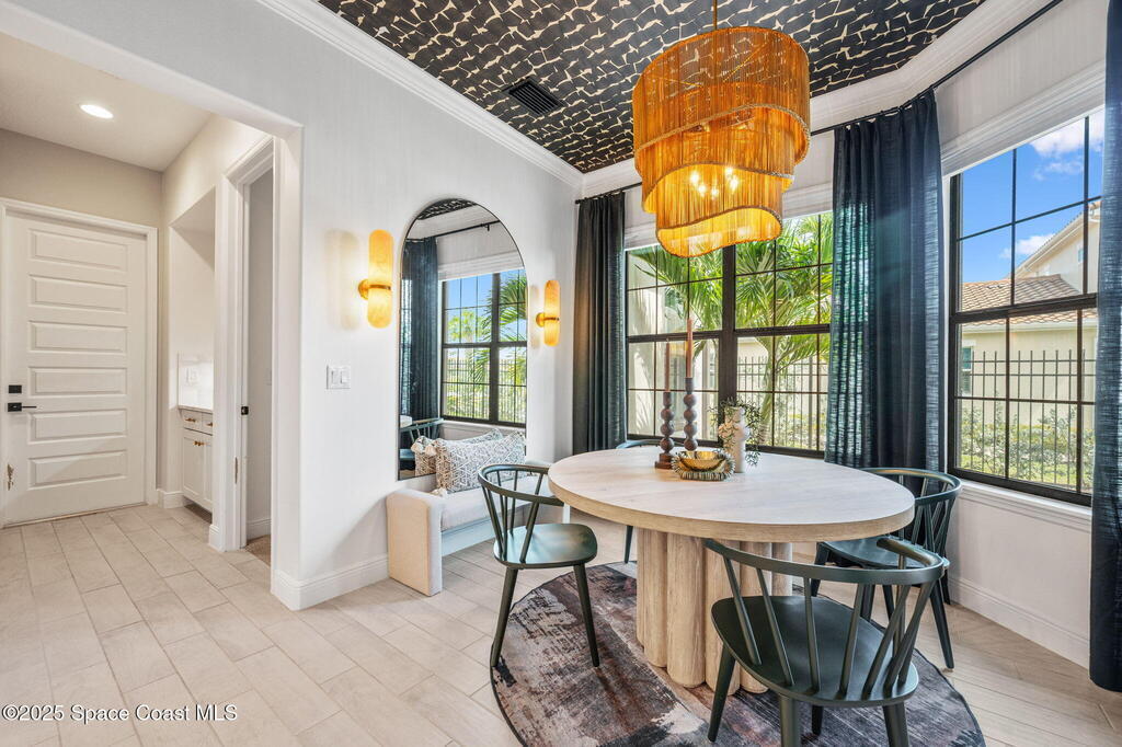 MOTIVATED SELLER ✨ Welcome to 2444 Addison Drive -- Where Luxury Meets Lifestyle! ✨ This 5-bedroom, 5-bathroom masterpiece with a dedicated office in the coveted Addison Village community of Viera redefines modern luxury living. With over $85,000 in upgrades after purchase, no detail has been overlooked. Step inside and be captivated by the open-concept design featuring soaring ceilings with exposed wood beams, an elegant electric fireplace, and a custom beverage bar with wine fridge -- perfect for entertaining. The chef's kitchen is a showstopper with quartz countertops and a dramatic waterfall island, gas range with pot filler, farmhouse sink, large walk-in pantry, and eat-in dining area. The master suite is privately tucked on the main floor, offering dual closets including a massive walk-in, dual vanities, and a spa-like walk-in shower. Upstairs, two separate staircases lead to private guest retreats, including a Jack-and-Jill bathroom connecting two spacious bedrooms.