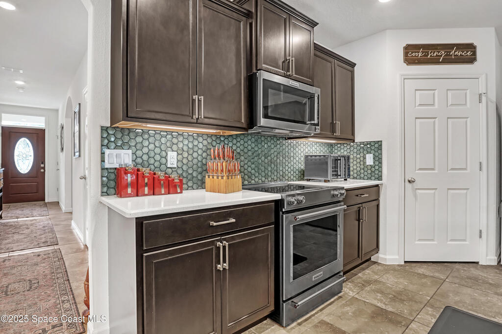 PRICED REDUCED! This beautifully upgraded 4-bedroom, 2-bath home has been meticulously maintained and is packed with premium features inside and out. Step inside to find luxury flooring throughout--no carpet--along with elegant quartz countertops, high-end appliances, a full security system, and custom interior and exterior lighting. The garage boasts an epoxy-coated floor, while the widened driveway with decorative pillars adds extra curb appeal. The freshly painted exterior and full gutter system provide lasting peace of mind. Out back, enjoy your extended screened-in patio with a custom pergola, outdoor BBQ kitchen, built-in bar, and kegerator--perfect for entertaining. The fully fenced backyard includes a spacious shed on a concrete slab. Quiet neighborhood with wonderful neighbors and just 1 mile from primary shopping and entertainment, this turn-key property blends comfort, function, and style. Don't miss this opportunity to own this move in ready home! (NO SIGN IN FRONT)