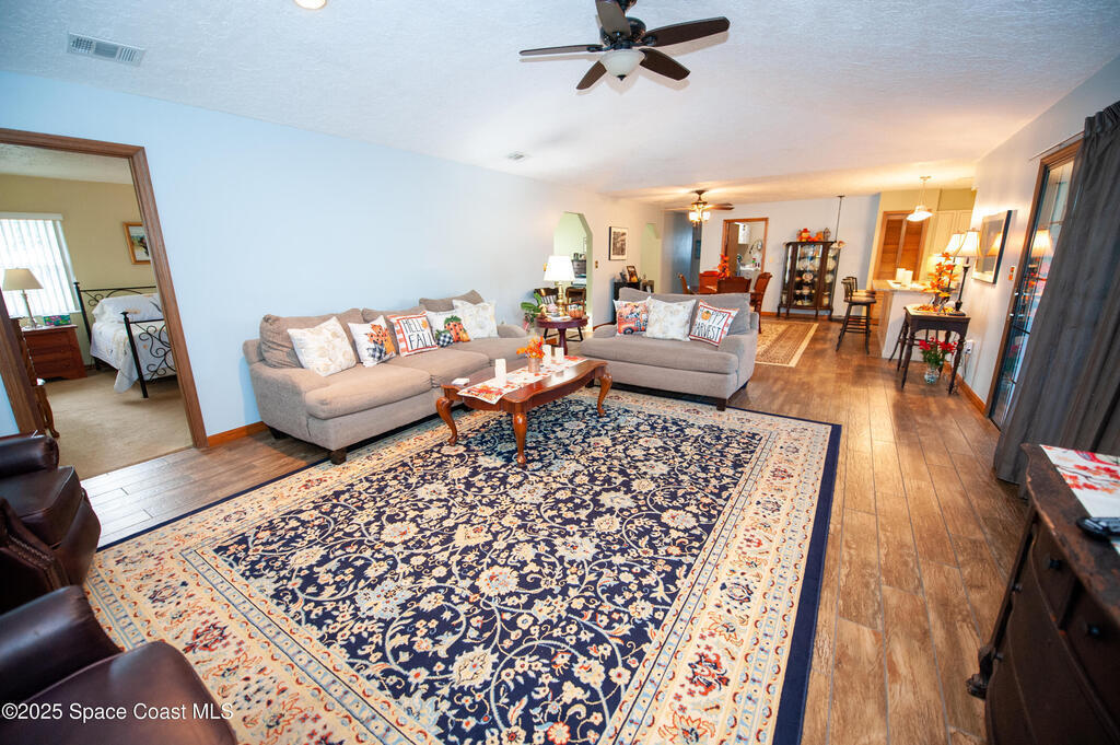 Welcome home! This lovely property offers the highly desired combination of a great location and NO HOA restrictions, giving you the freedom to truly make it your own. This spacious home features 3 Bedrooms, 2 full Baths, and a 2 Car Garage with almost 2000 living sq ft. HVAC 2020. Roof 2017. The open floor plan and huge kitchen are perfectly designed for comfortable living and entertaining. Step outside to enjoy the Florida breeze of the Indian River from your private screened porch, or gather in the fully fenced yard--the perfect spot to watch the incredible, world-famous rocket launches!You'll be joining a wonderful community with great neighbors, all while being centrally located along the Space Coast...Just minutes from the Beachline-528, 520, I95, Port Canaveral, Beaches, Shopping, Fishing, Restaurants & more! Close proximity to Patrick Space Force Base, Space X, Blue Origin, and Kennedy Space Center. Easy drive to all the Orlando attractions and the MCO Airport too.