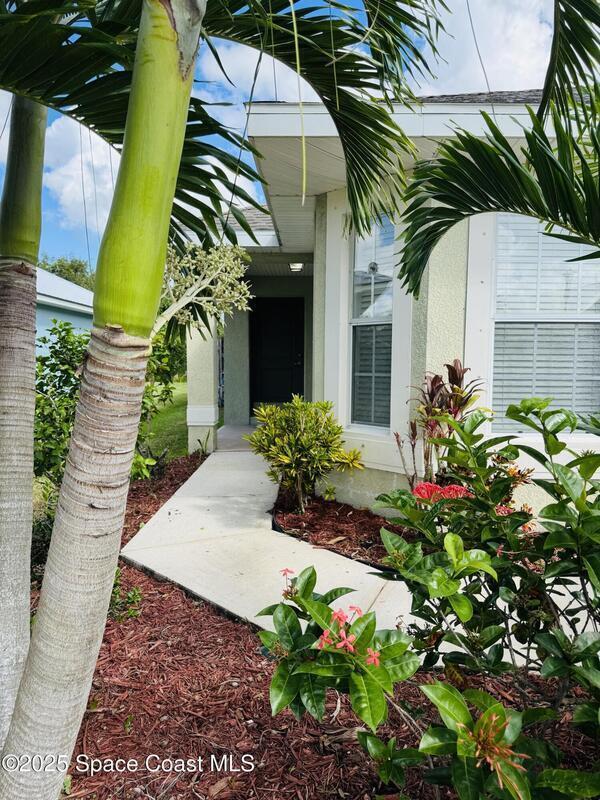 2025 Nov Brand New Roof - Move-In Ready Home in a Quiet Gated Community. This beautifully maintained home features an open floor plan with elegant flooring throughout. The family room boasts vaulted ceilings and a plant ledge for added charm, while the bright kitchen includes a breakfast nook, new refrigerator, microwave, faucet, and garbage disposal. The spacious master suite offers a walk-in closet and a new bathroom toilet. Additional conveniences include above-garage storage, storm shutters, and a freshly power-washed entrance. Enjoy the screened patio and inviting lanai overlooking a fenced backyard--perfect for privacy and family living. Recent updates include a new AC, upgraded water heater, and modernized sprinkler system. Ideally located near top schools, minutes from the beach, airport, I-95, major employers, and within walking distance to the community pool.