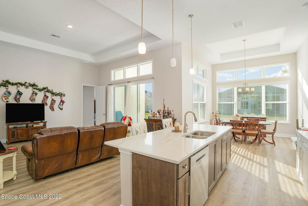Celebrate coastal living, close to the river! This beauty is located in the gated Georgiana Reserve Subdivision, steps from the Indian River & full of high-end features! Punctuated w/luxury vinyl floors & crowned w/tray ceilings, this modern abode is wide-open & infused w/natural light. Entertain in a generous great rm w/formal & casual dining areas. At the center, a marbled quartz island kitchen with SS appliances, a wall oven, crisp white cabinetry & walk-in pantry. The master has dual granite sinks, a large subway tile shower w/bench seating & a big walk-in closet w/personal entry to the laundry rm. 1 of the extra bdrms provides an attached bath. A breezy covered lanai overlooks the sizable backyard. Washer, dryer & lawn care included. Attention boat lovers! Across the street is the path to the community's riverside dock. Also enjoy the neighborhood lake & nature trail!